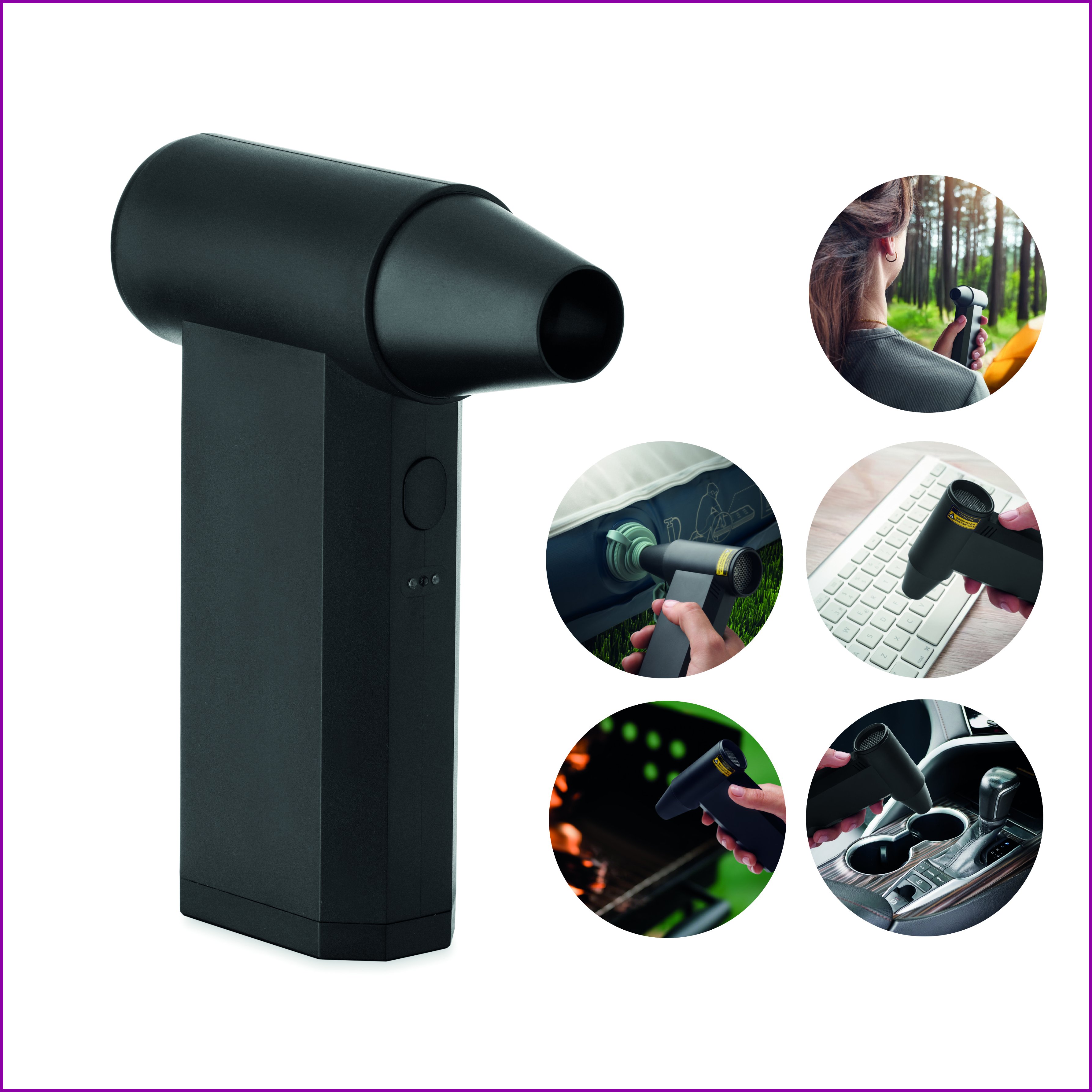 Voimakas tuuletin. Kannettava turbotuuletin, jossa on 3 LED-valoa ja 4 tuuletusnopeusasetusta, jopa 130 000 rpm. Tuulen nopeus 35 m sekunnissa. Sisäänrakennettu 4000 mAh ladattava akku. Voit käyttää laitetta pölyyn, puhaltimena, tuulettimena tai hiustenkuivaajana.