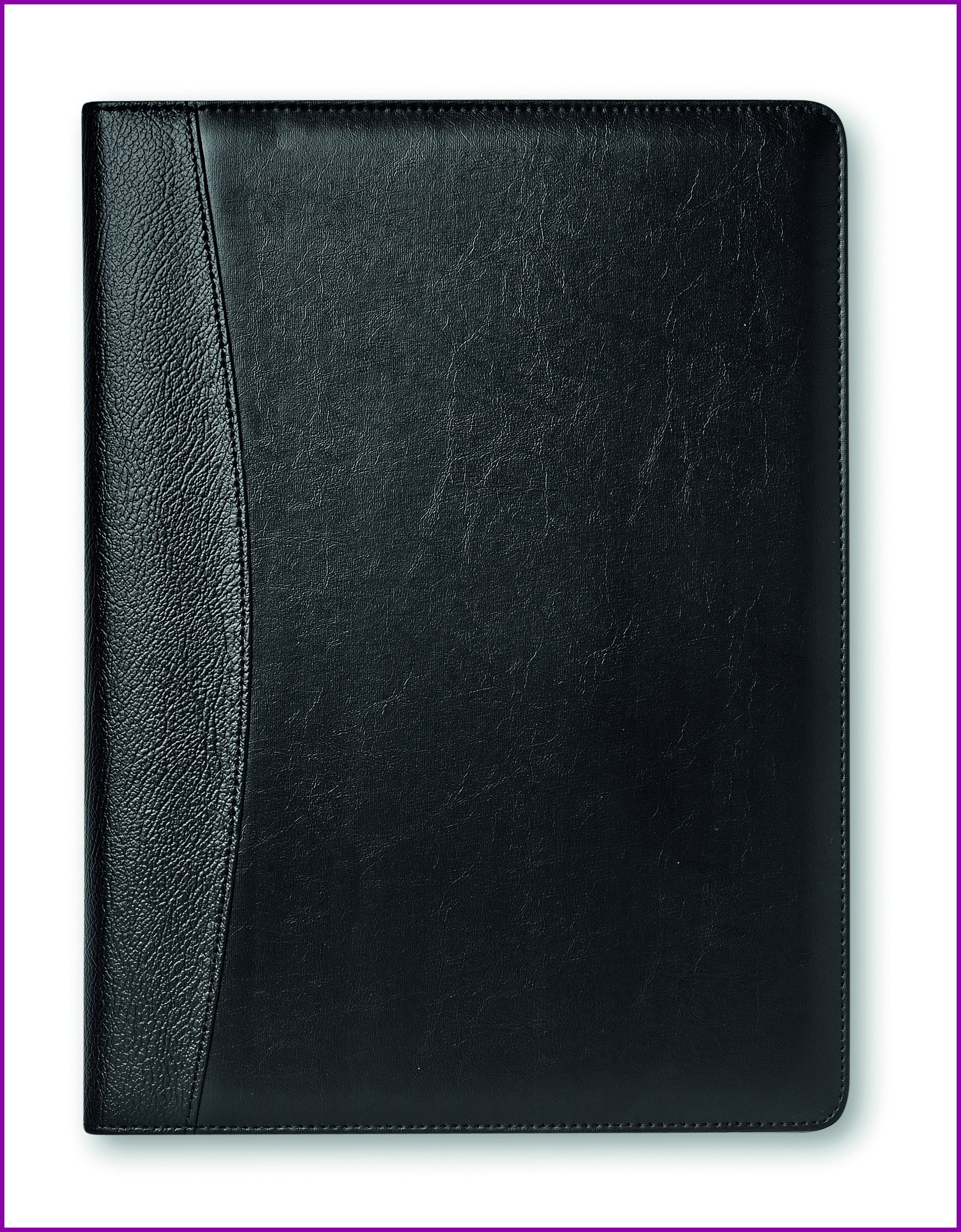 Keinonahkainen A4 kansio, sisältää aurinkoenergialla toimivan laskimen, kuulakärkikynän sinisellä musteella ja 20 sivun muistilehtiön.