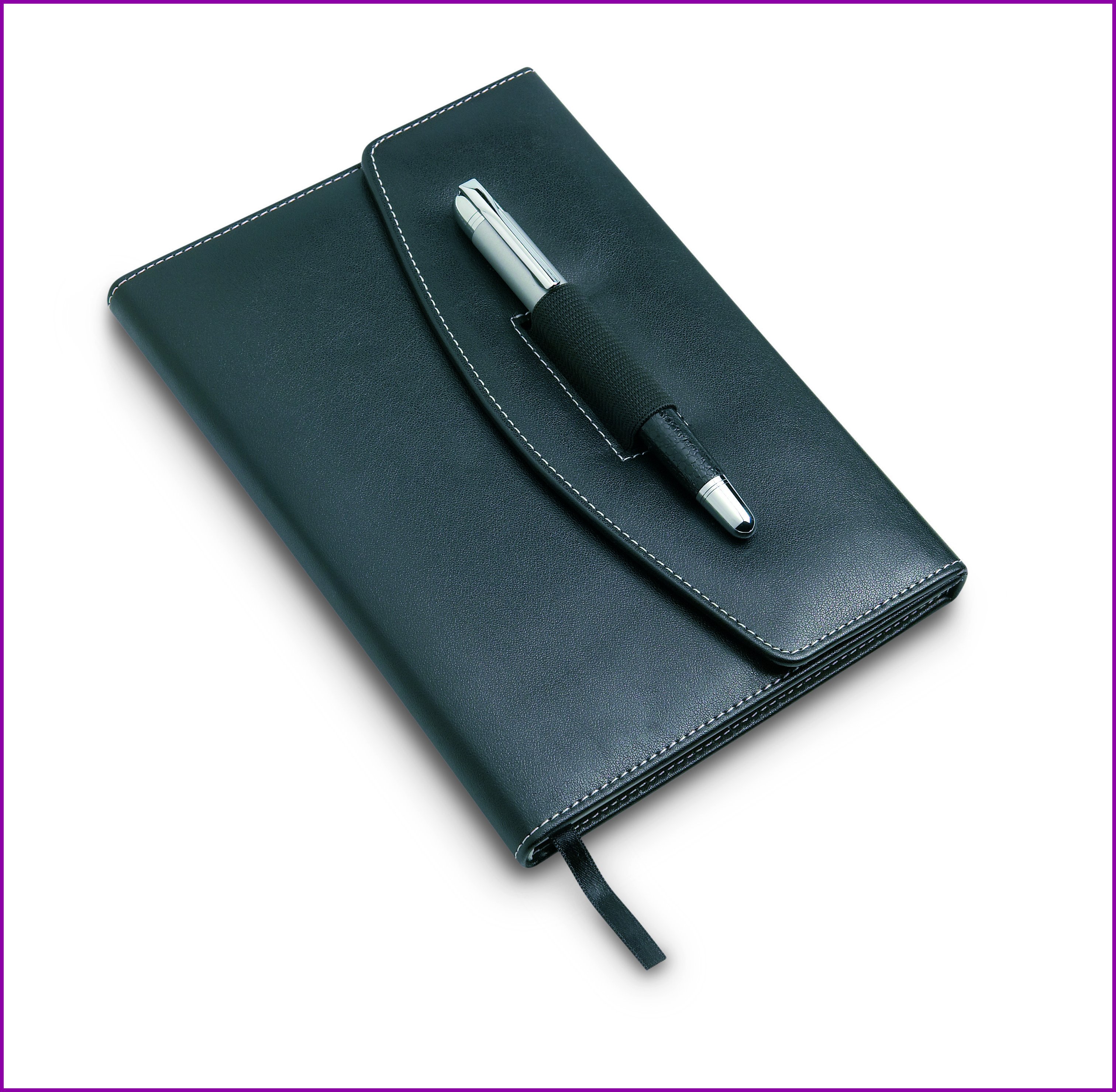 A5 PU kansio kontrastitikkauksella, sisältää 120 sivua viivattua paperia ja metallikynän mustalla musteella.