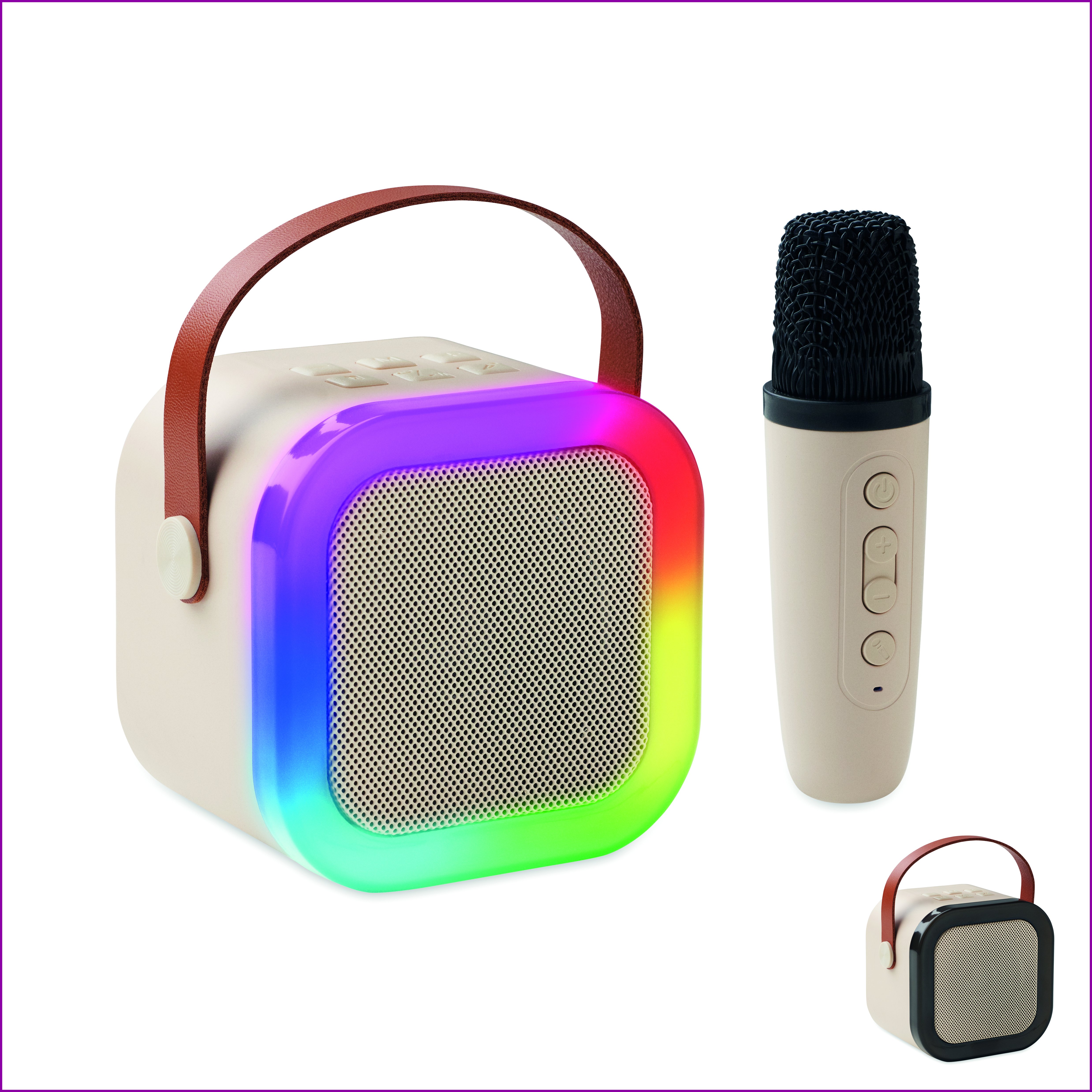 Karaokesetti, johon kuuluu 5 W:n langaton kaiutin kierrätetystä ABS-muovista ja väriä vaihtavalla LED-valolla, PU-kahva ja mikrofoni. Sisäänrakennettu 800 mAh:n akkukaiutin ja 400 mAh:n akkumikrofoni. Toistoaika noin 3 tuntia.