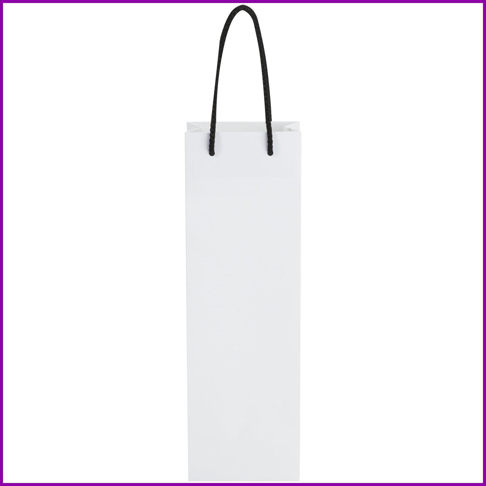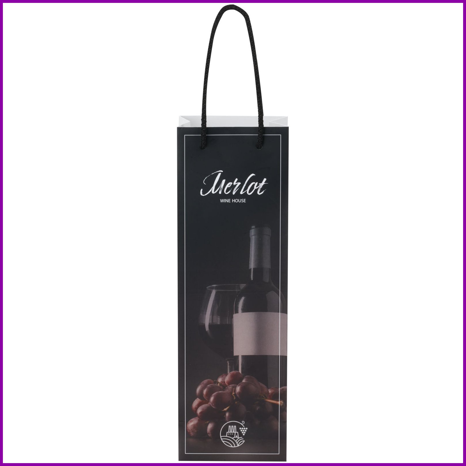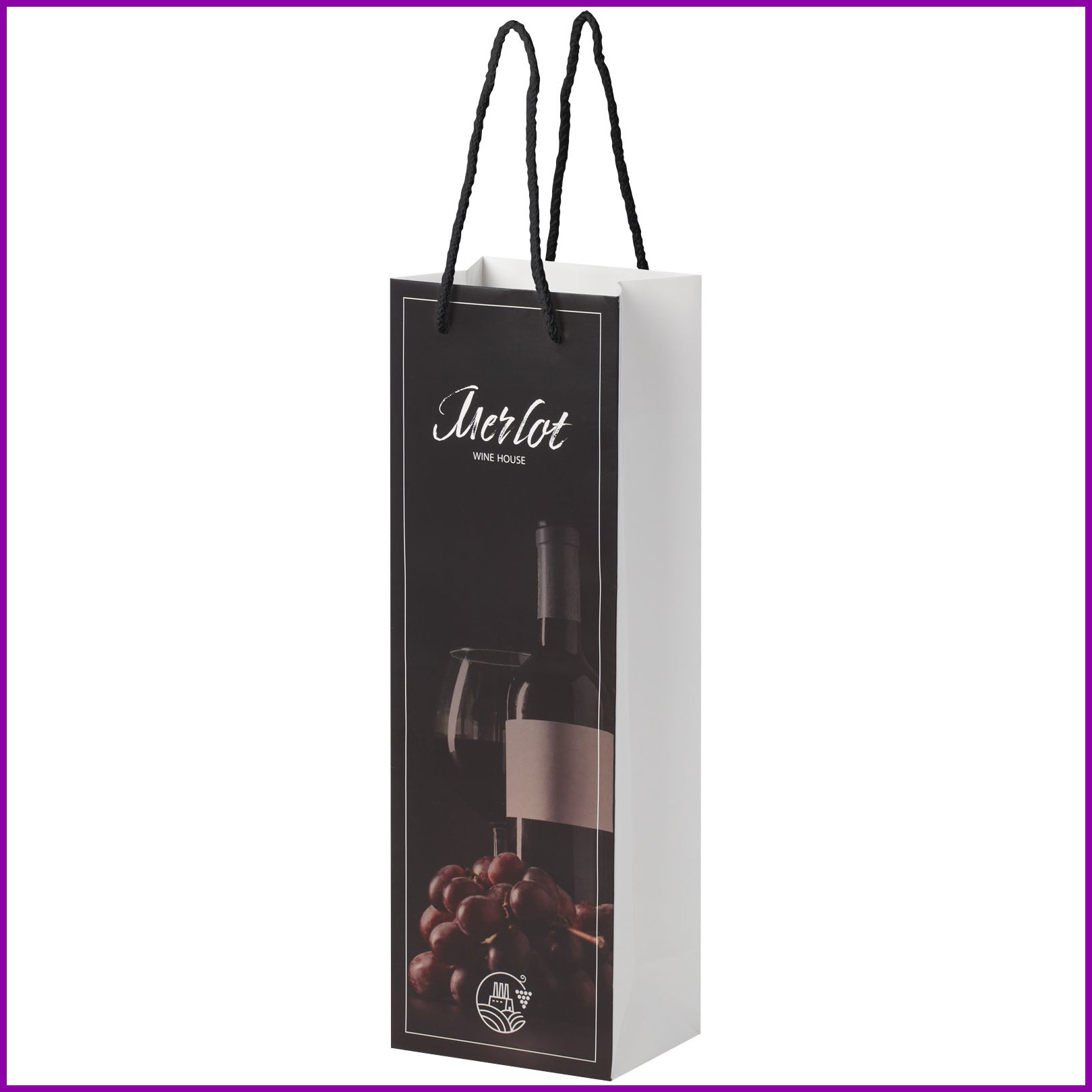 Pyydä tarjous painatuksesta tuotteseen Käsintehty integra-paperi 170 g/m2 viinipullokassi muovinarukahvoilla – 12 x 9 x 37 cm Valkoinen Musta