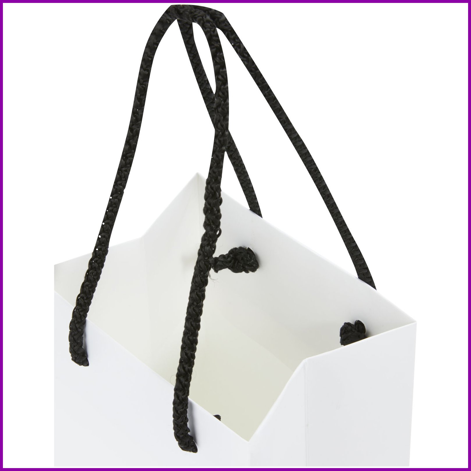 Käsintehty integra-paperikassi 170 g/m2 muovinarukahvoilla – 9,5 x 4 x 17 cm Valkoinen Musta