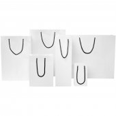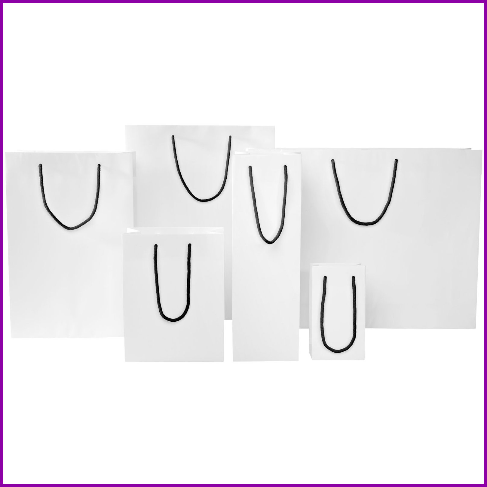 Käsintehty integra-paperikassi 170 g/m2 muovinarukahvoilla – 18 x 9 x 23 cm Valkoinen Musta