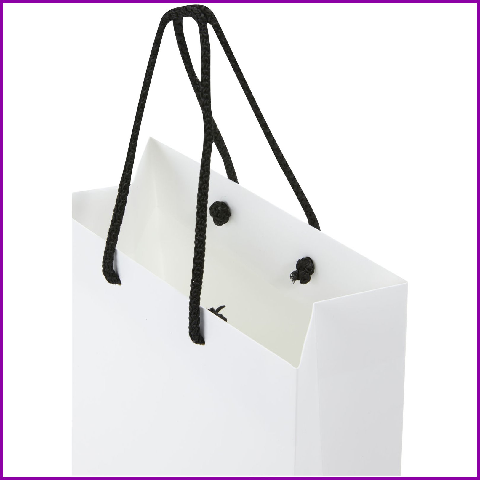 Pyydä tarjous painatuksesta tuotteseen Käsintehty integra-paperikassi 170 g/m2 muovinarukahvoilla – 18 x 9 x 23 cm Valkoinen Musta