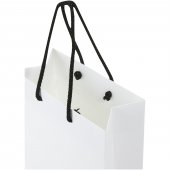 Käsintehty integra-paperikassi 170 g/m2 muovinarukahvoilla – 9,5 x 4 x 17 cm Valkoinen Musta