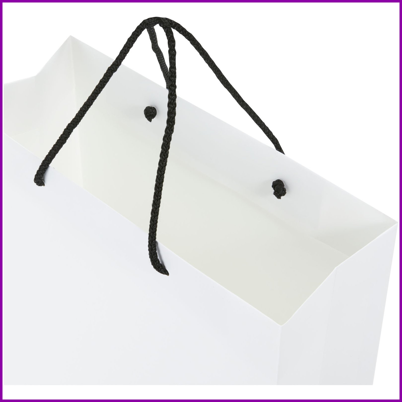 Käsintehty integra-paperikassi 170 g/m2 muovinarukahvoilla – 31 x 12 x 41 cm Valkoinen Musta