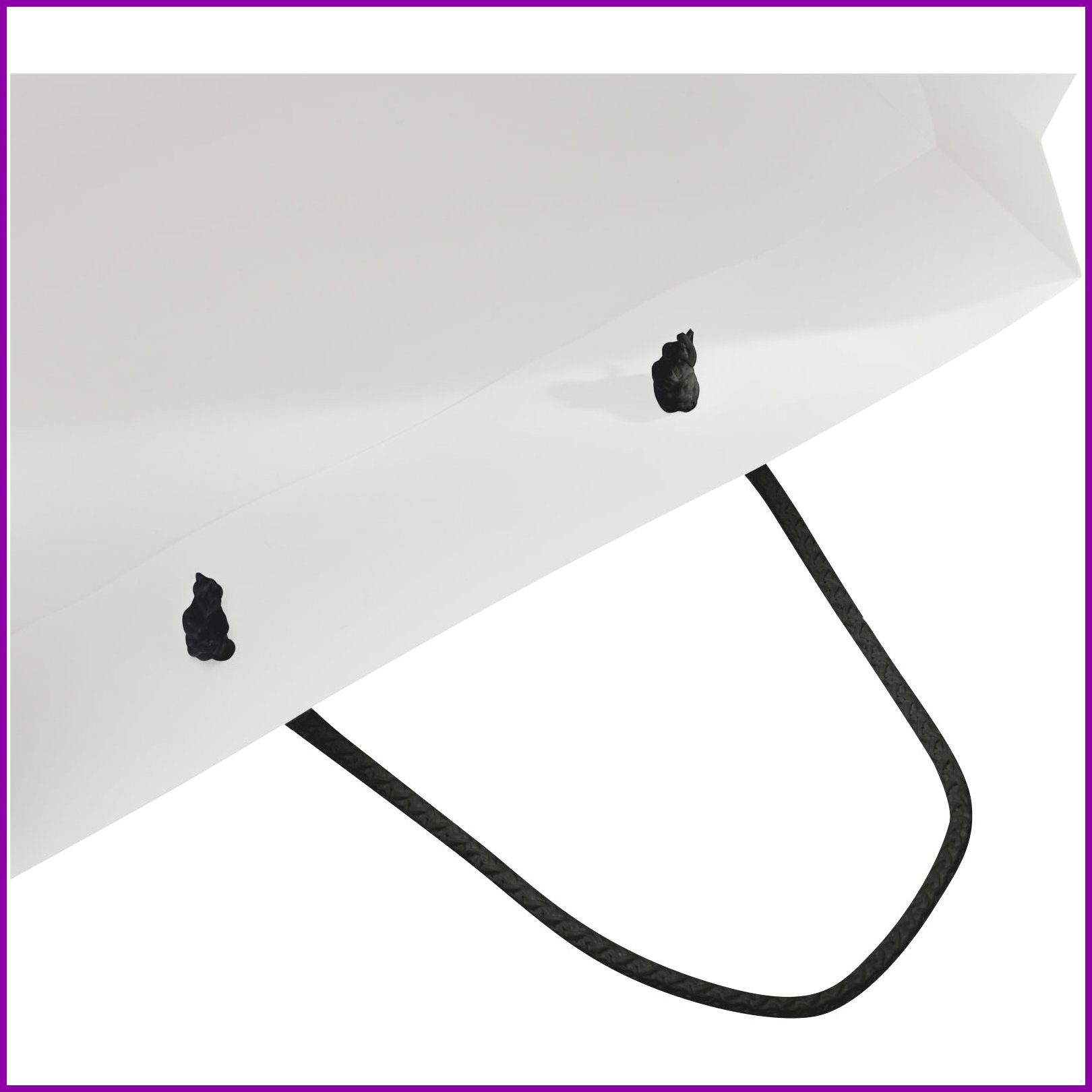 Pyydä tarjous painatuksesta tuotteseen Käsintehty integra-paperikassi 170 g/m2 muovinarukahvoilla – 31 x 12 x 41 cm Valkoinen Musta