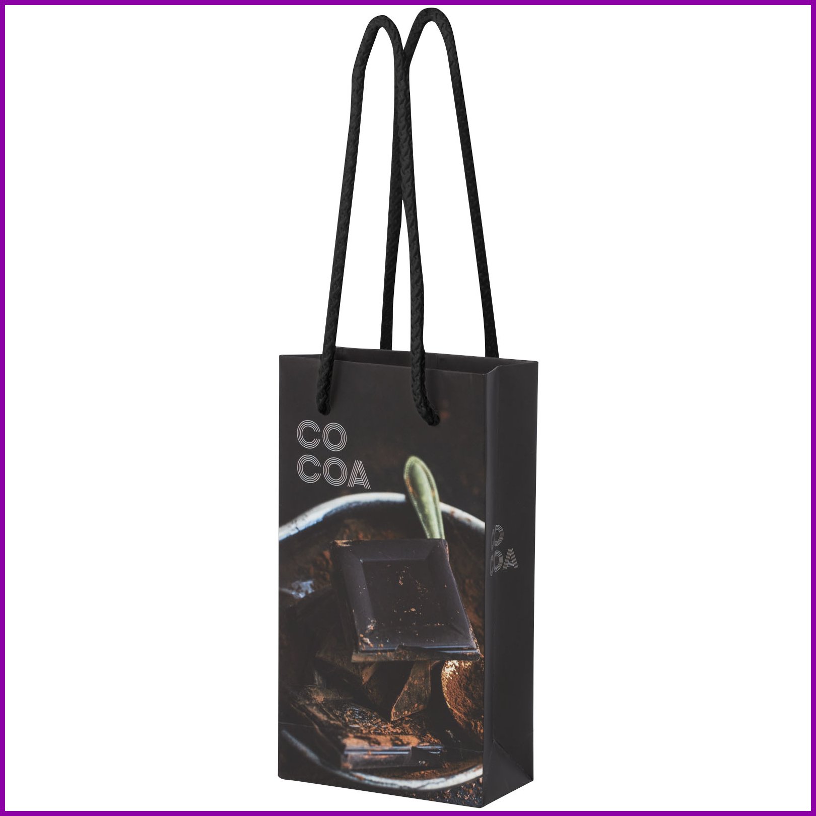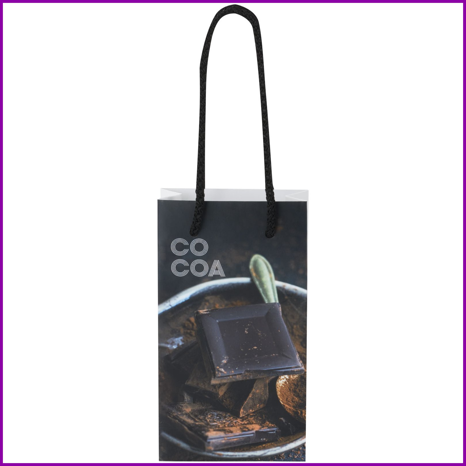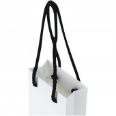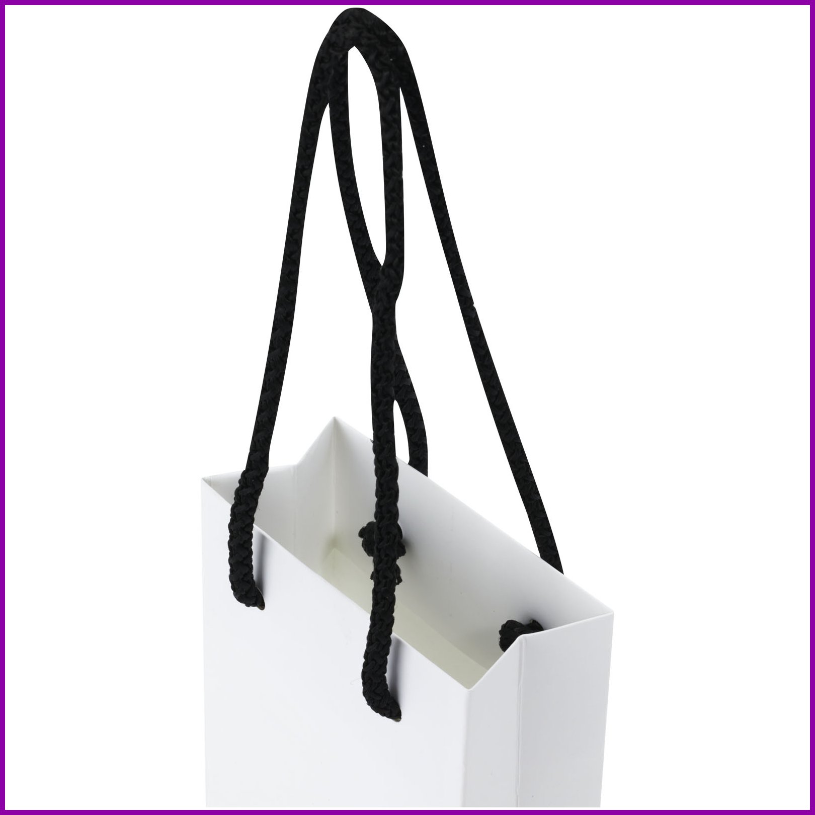 Pyydä tarjous painatuksesta tuotteseen Käsintehty integra-paperikassi 170 g/m2 muovinarukahvoilla – 9,5 x 4 x 17 cm Valkoinen Musta