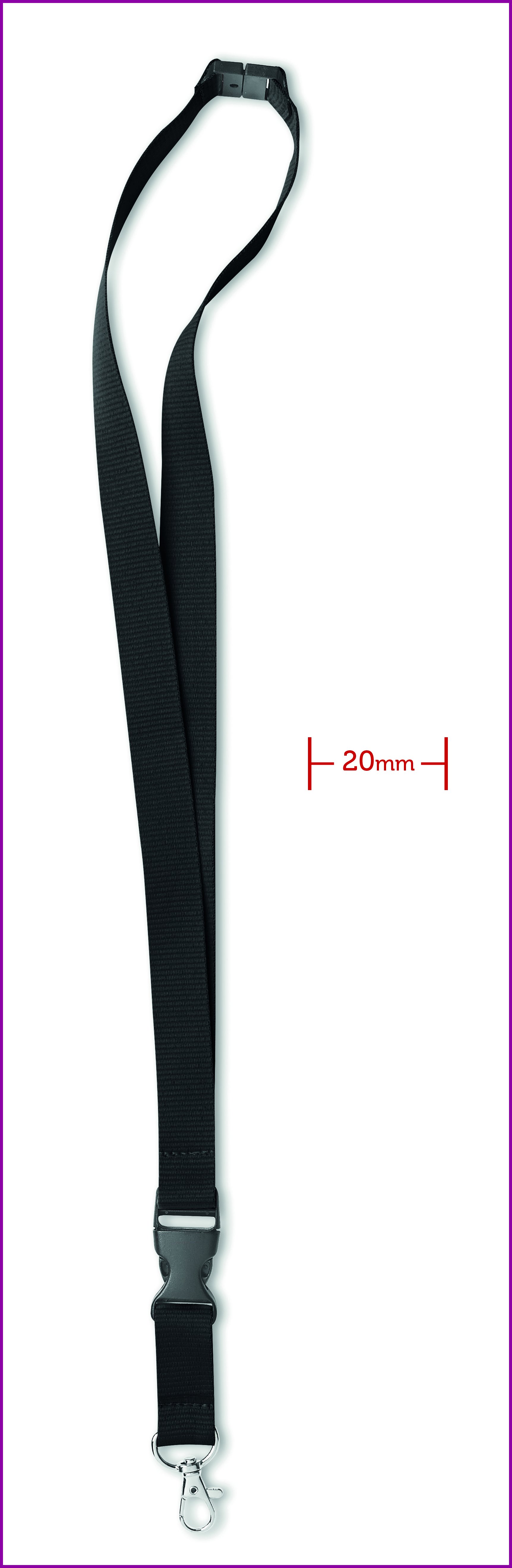 20mm kaulanauha papukaijalukolla, irrotettava pistosolki ja turvalukko niskassa.