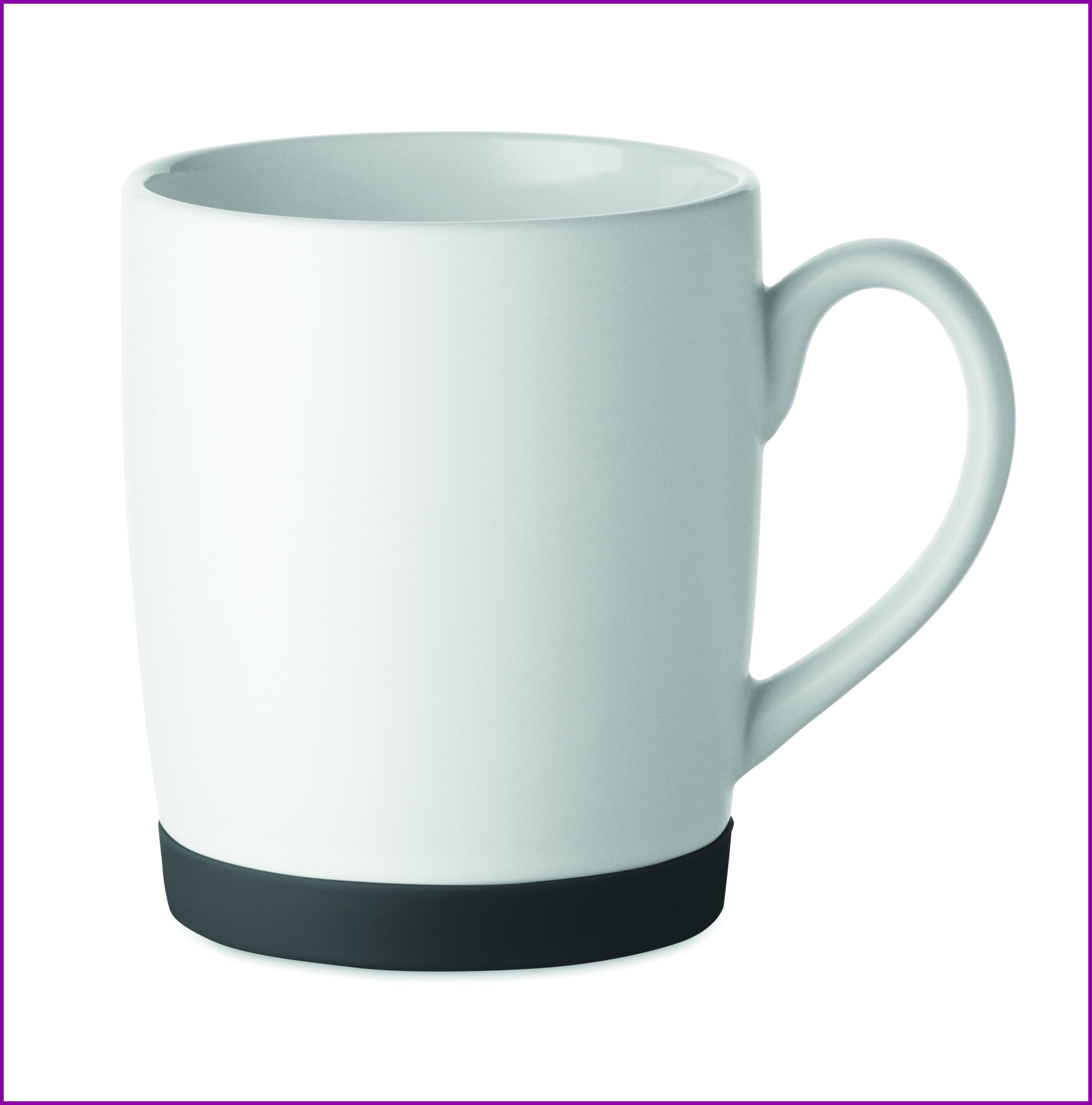 Keraaminen muki, jossa valkoinen mattapinta ja silikonipohja vakauden takaamiseksi. Tilavuus 300 ml. Yksittäispakattu valkoiseen pahvilaatikkoon.