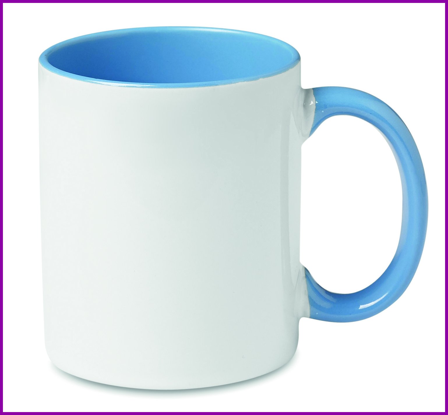 Keraaminen muki 300 ml erikoispinnoite sublimaatiota varten, värillisellä kahvalla ja sisäpuolella. Yksittäispakattuna valkoiseen pahvilaatikkoon.