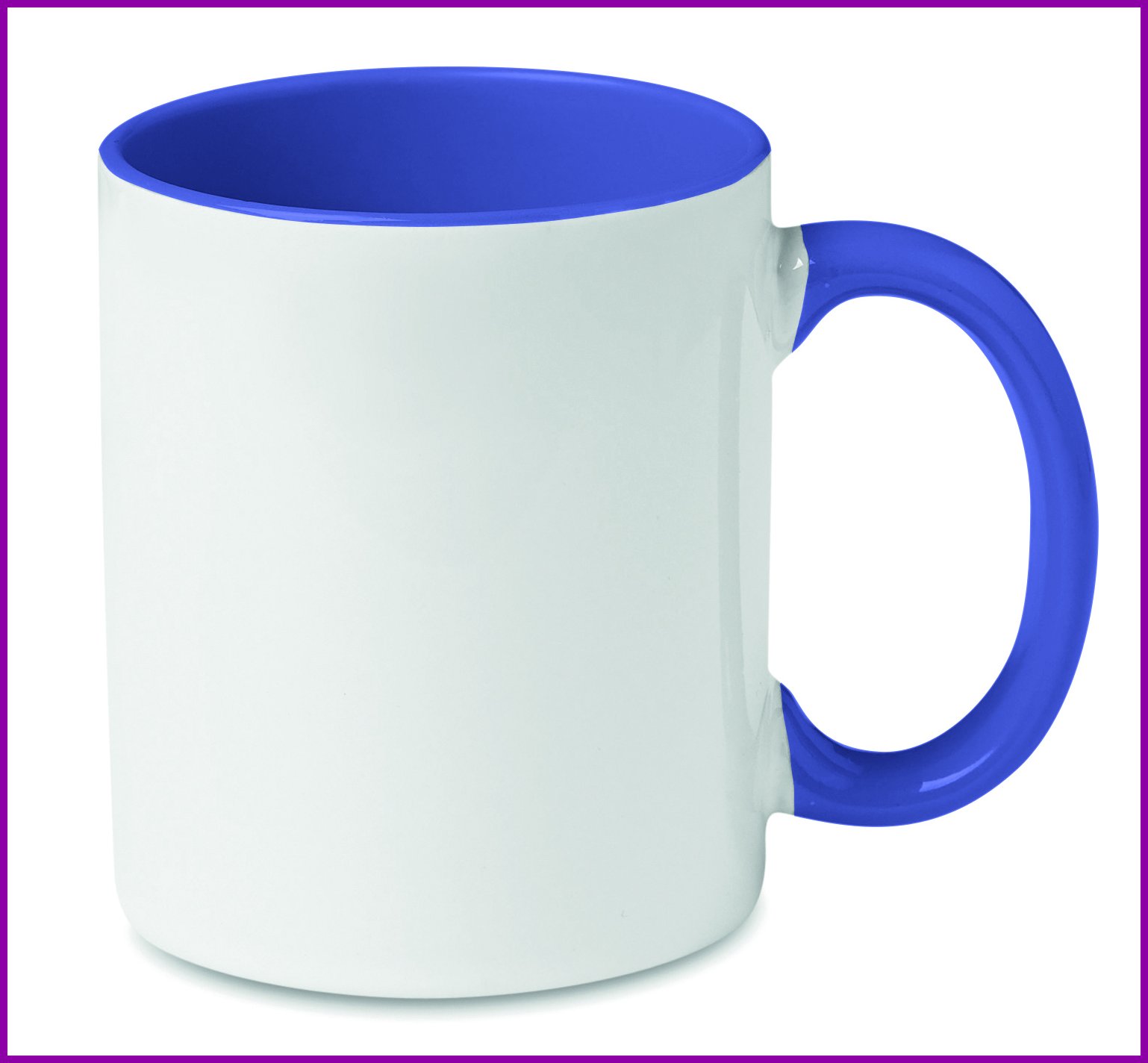 Keraaminen muki 300 ml erikoispinnoite sublimaatiota varten, värillisellä kahvalla ja sisäpuolella. Yksittäispakattuna valkoiseen pahvilaatikkoon.