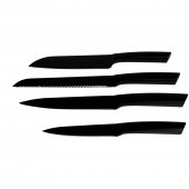 Setti, jossa 4 keittiöveistä ja puinen leikkuulauta (18 x 21,4 x 3 cm). Setti sisältää 1 leipäveitsen (20 cm), 1 Santoku-veitsen (17,8 cm), 1 lihaveitsen (17,8 cm) ja 1 yleisveitsen (12,7 cm). Leikkuulauta on magneettinen, ja siinä on taitettava jalusta sekä musta metallilevy painatusta varten. Toimitetaan kierrätetystä voimapaperista valmistetussa lahjapaketissa (21,5 x 38,5 x 4,5 cm).