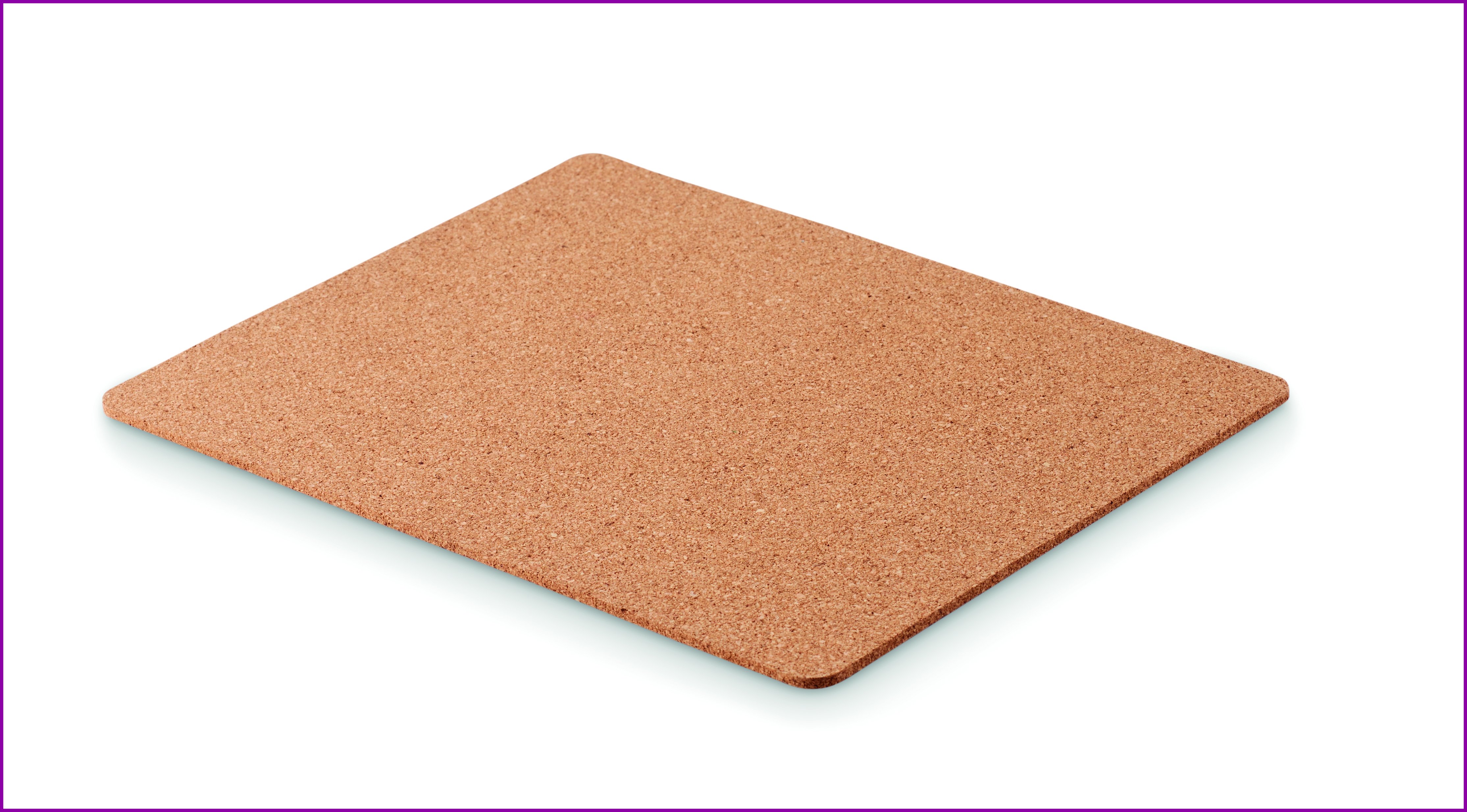 Korkista valmistettu hiirimatto. Korkki on luonnonmateriaali, strukturaalinen laatu ja pinnan huokoisuus voi aiheuttaa eroavaisuuksia tuotteissa painatuksen jälkeen