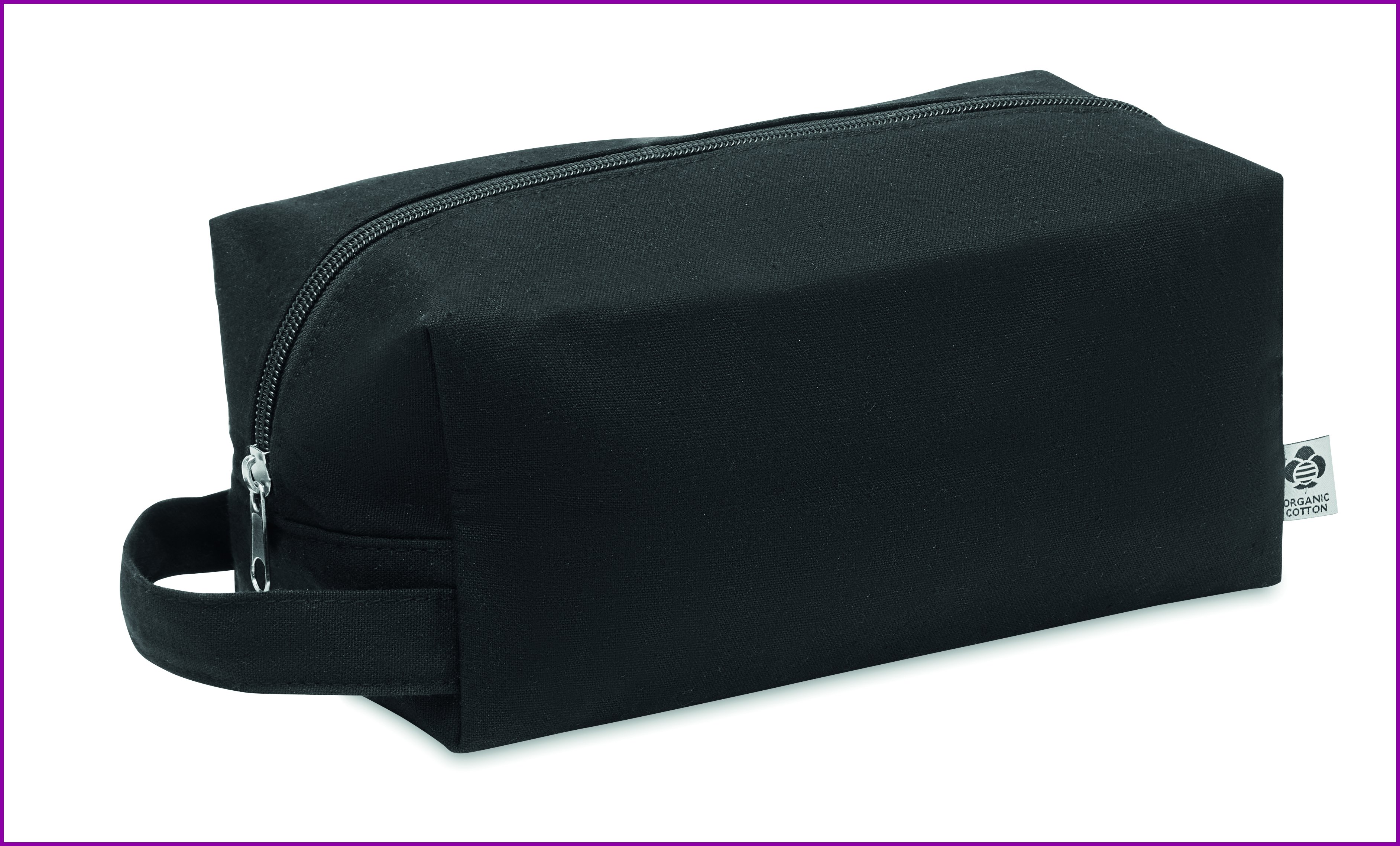 Kosmetiikkalaukku vetoketjulla, materiaali 220 gr/m² orgaaninen puuvillacanvas. Vuori on 140 gr/m² luomupuuvillaa.