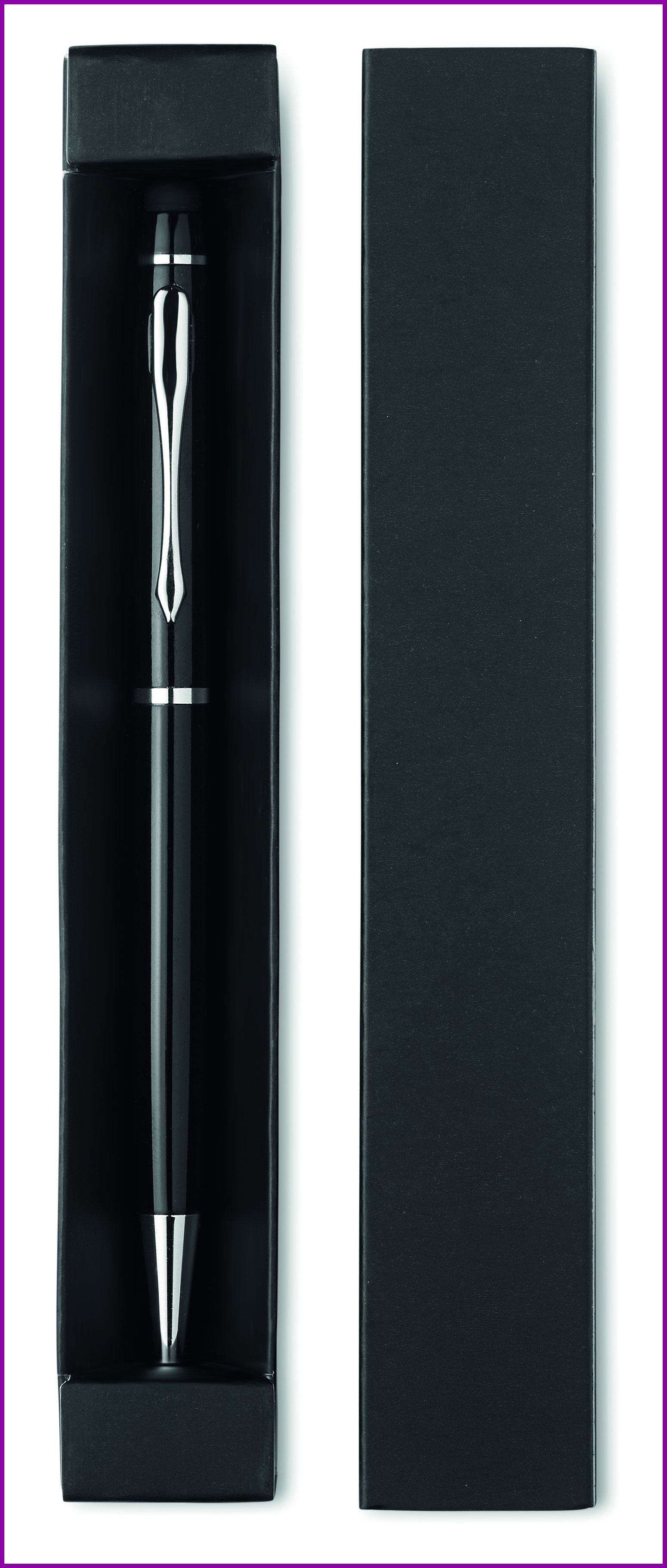 Alumiinen kuulakärkikynä sinisellä musteella ja kosketusnäyttöpäällä. Pakattuna lahjapakkaukseen.