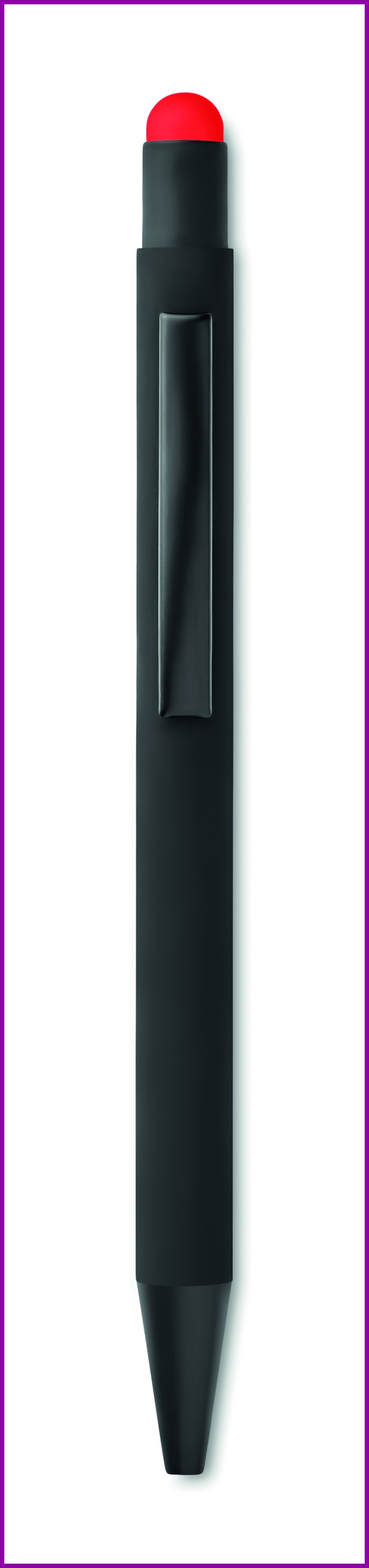 Painonapilla varustettu kosketusnäyttökynä, valmistettu kierrätetystä alumiinista.