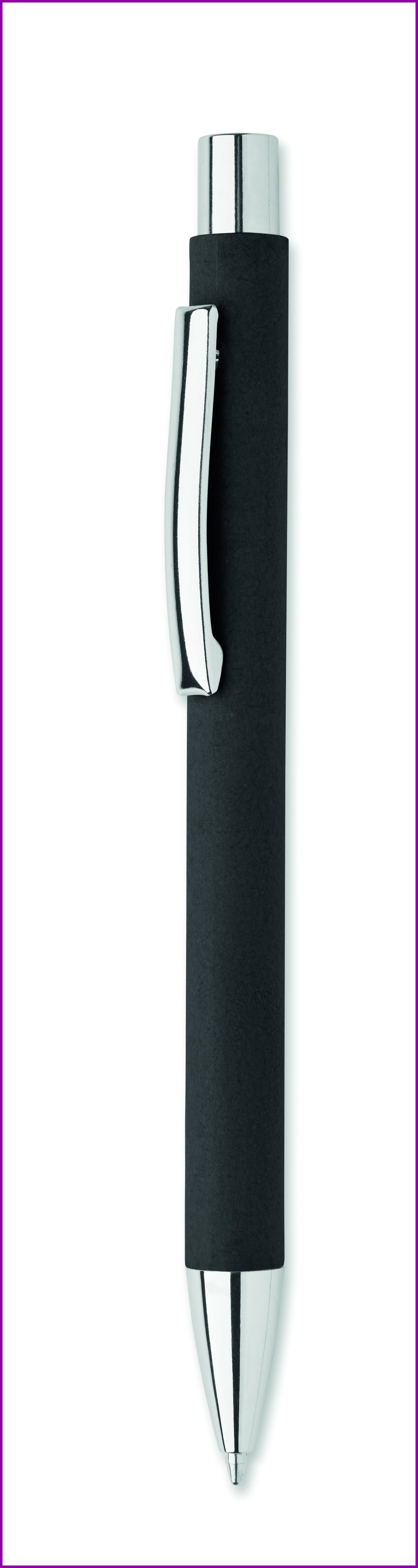 Kierrätyspaperista valmistettu painonappikuulakärkikynä, jossa on metallinen kärki ja klipsi. Sininen muste. FSC®-certified | FSC RECYCLED, P9, FSC-C213206