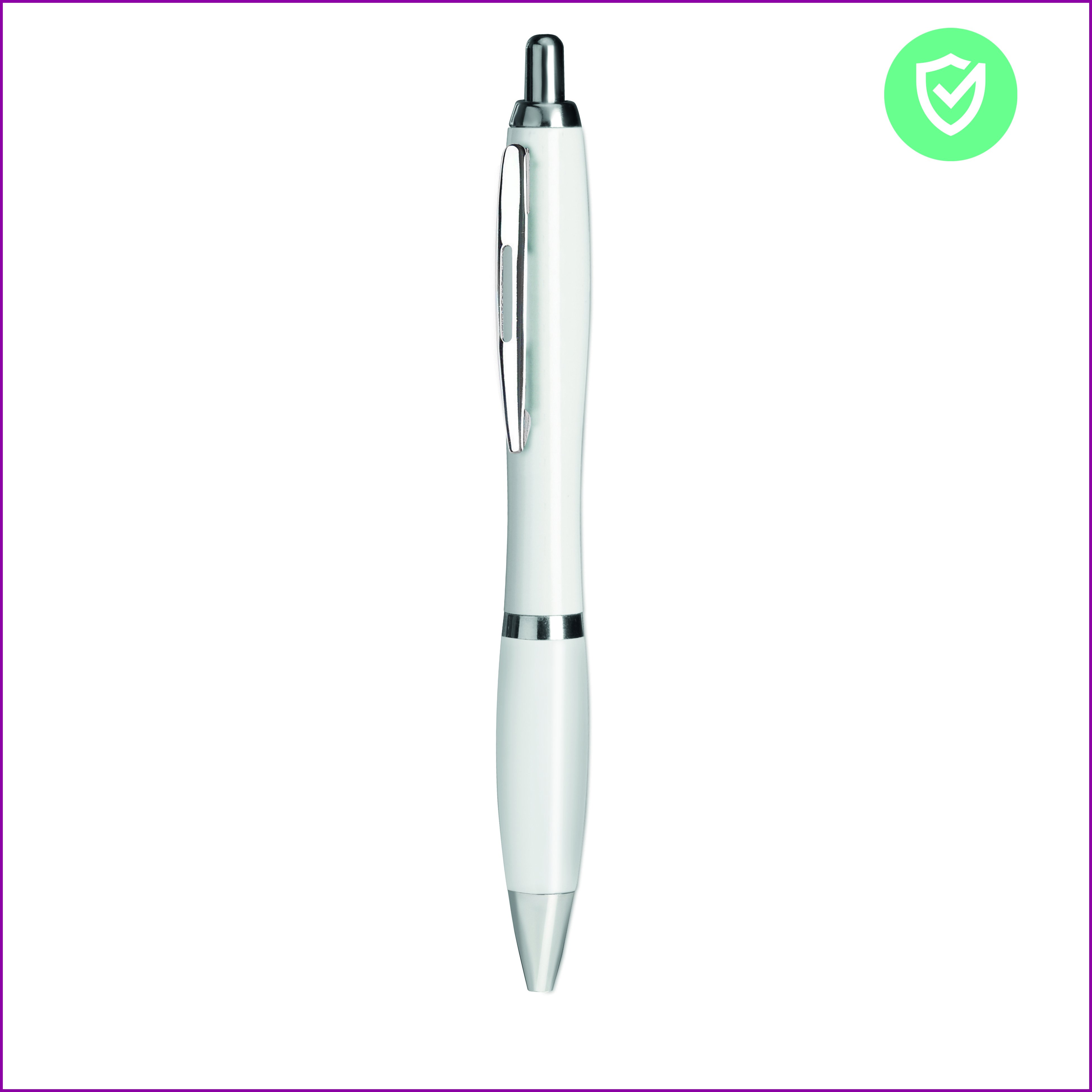 ABS kuulakärkikynä sinisellä musteella ja antibakteerisella rungolla (ISO 2216) sisältää erikoisen lisäaineen (nano silver) kynän rungolla, lisäaine estää bakteerien lisääntymisen.