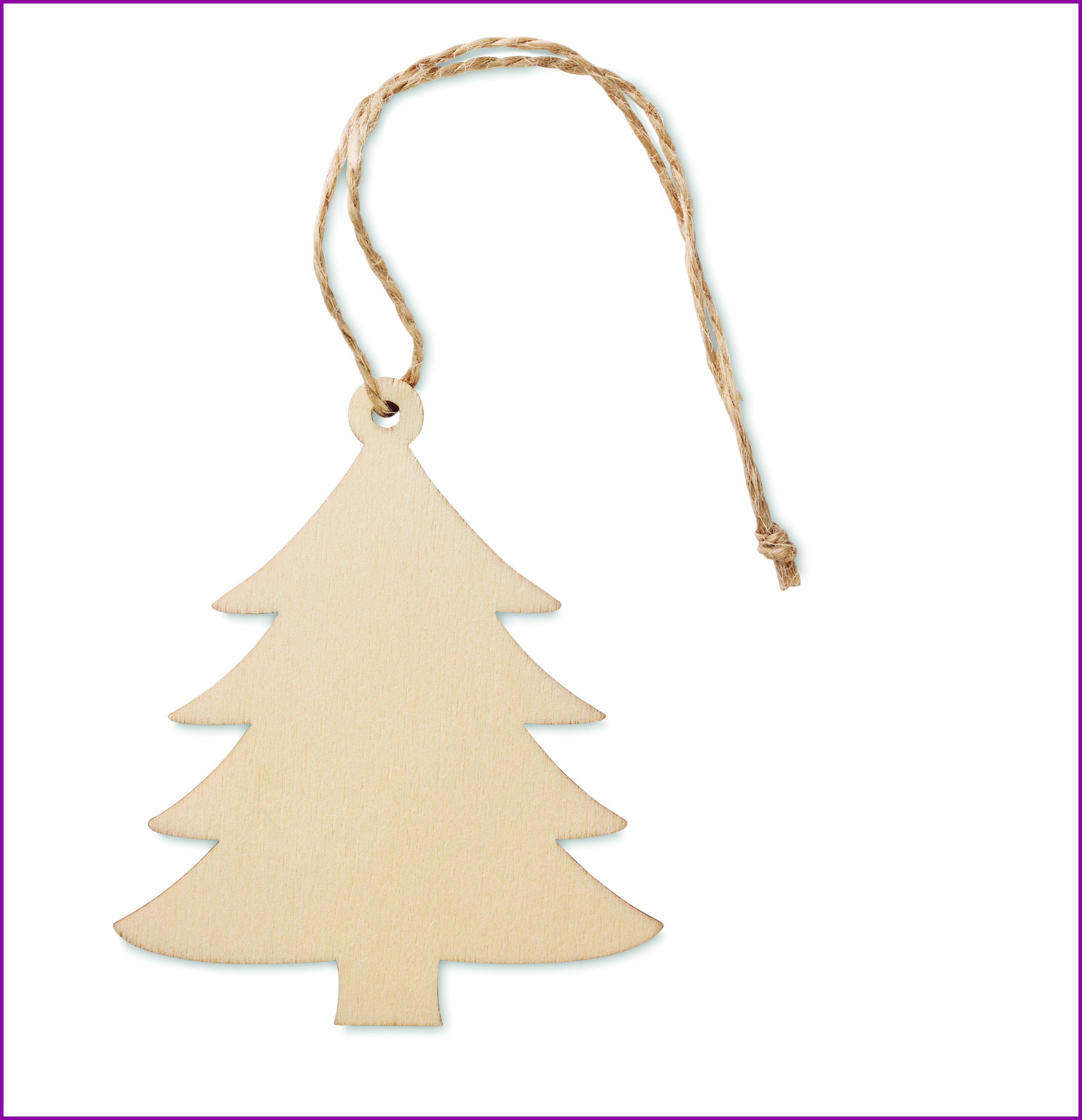 Puinen MDF kuusen muotoinen kuusenkoriste juuttilankaripustimella. Luonnollisen materiaalin (MDF) vuoksi, tuotteiden värissä/ koossa saattaa olla erinäisyyksiä ja tämä voi vaikuttaa painatuksen lopputulokseen.