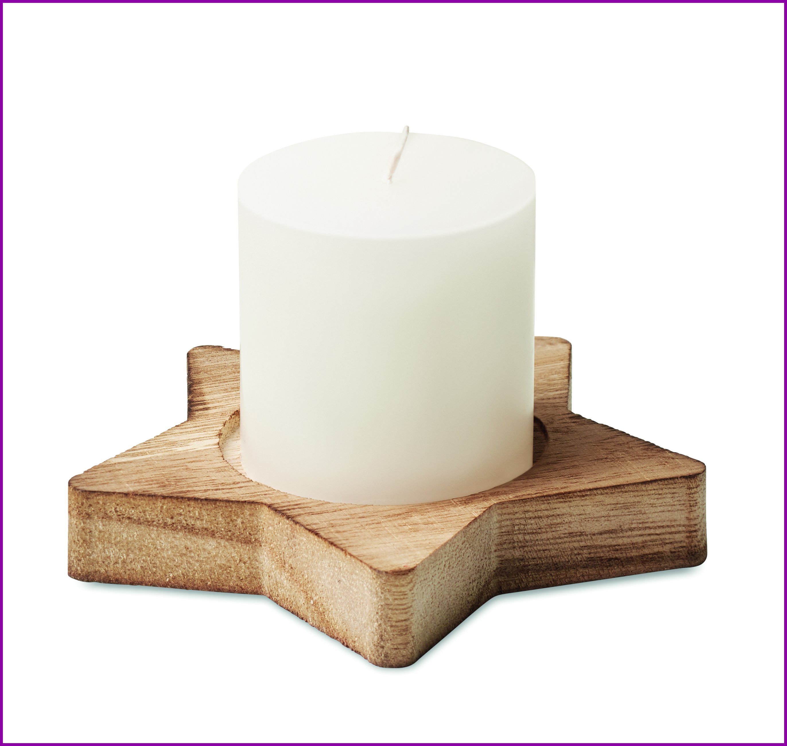 Tähden muotoinen puinen kynttilänalunen ja vaniljan tuoksuinen kynttilä. Arvioitu palamisaika 12 tuntia. Luonnollisen materiaalin vuoksi, tuotteiden värissä/ koossa saattaa olla erinäisyyksiä ja tämä voi vaikuttaa painatuksen lopputulokseen.