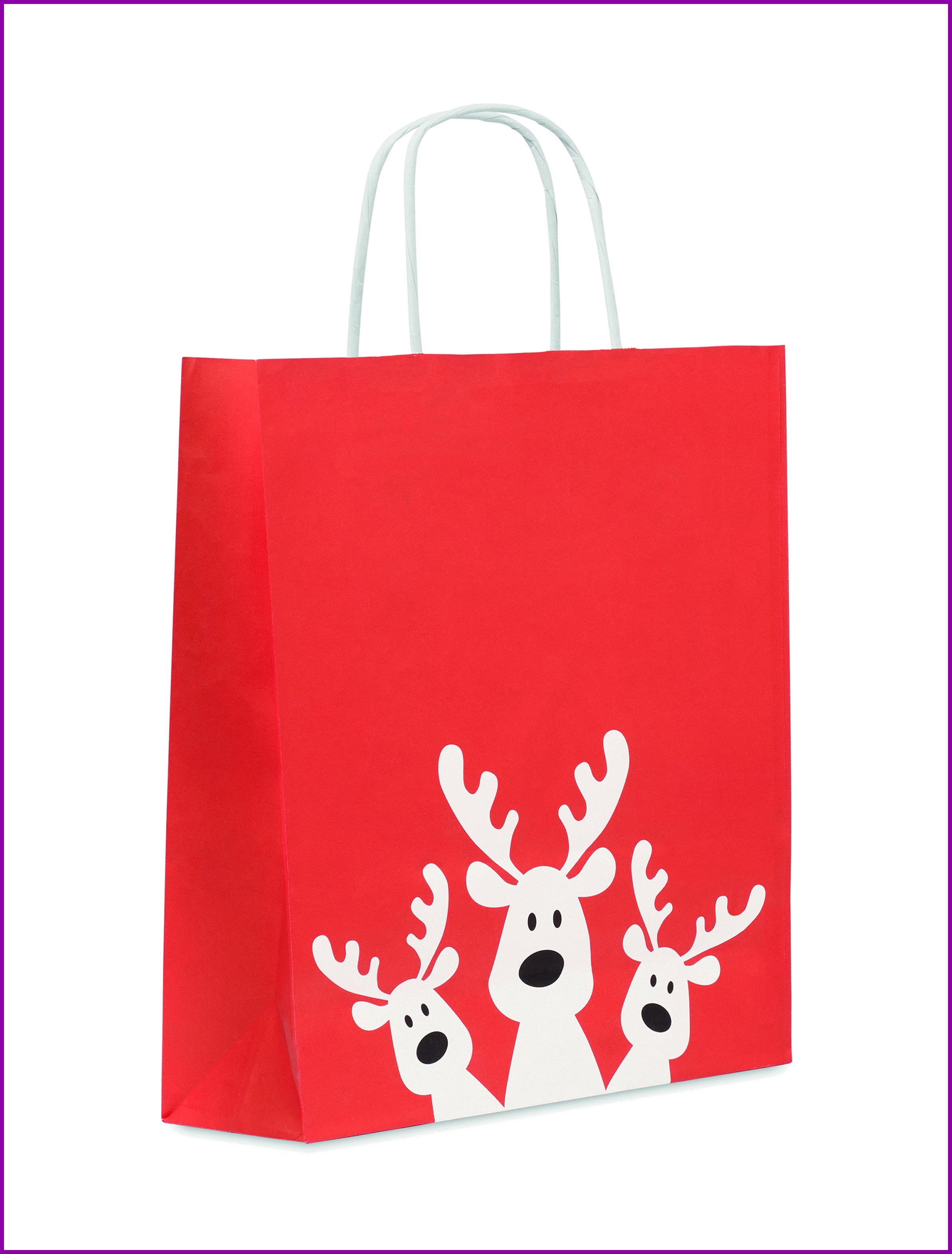 Jouluinen keskikokoinen paperikassi (50 % kierrätyspaperia). 90 gr/m². Valmistettu EU:ssa.