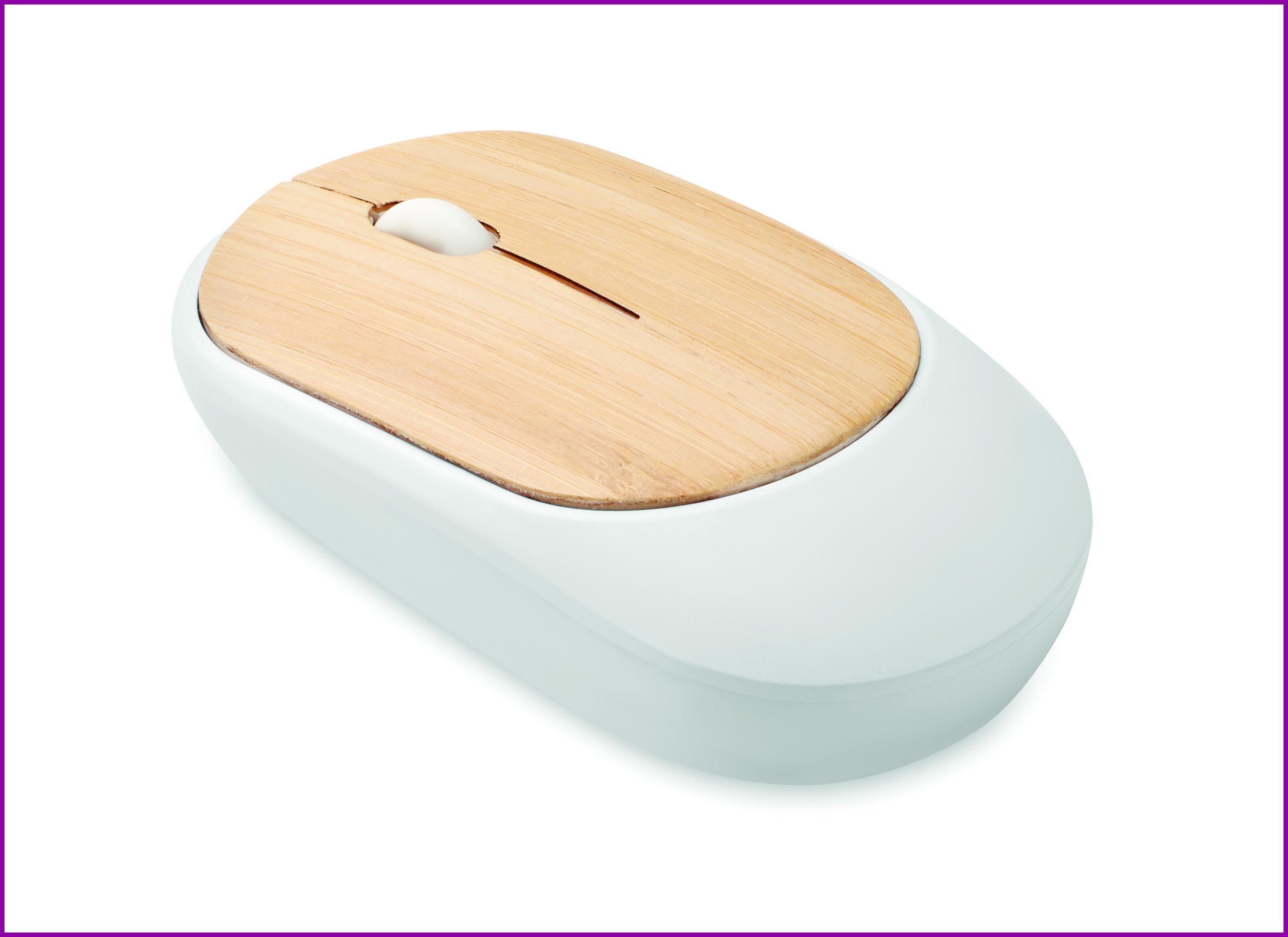 Langaton optinen hiiri kierrätetystä ABS-materiaalista, jossa on bambupäällinen. 1 AA-paristoa ei sisälly.