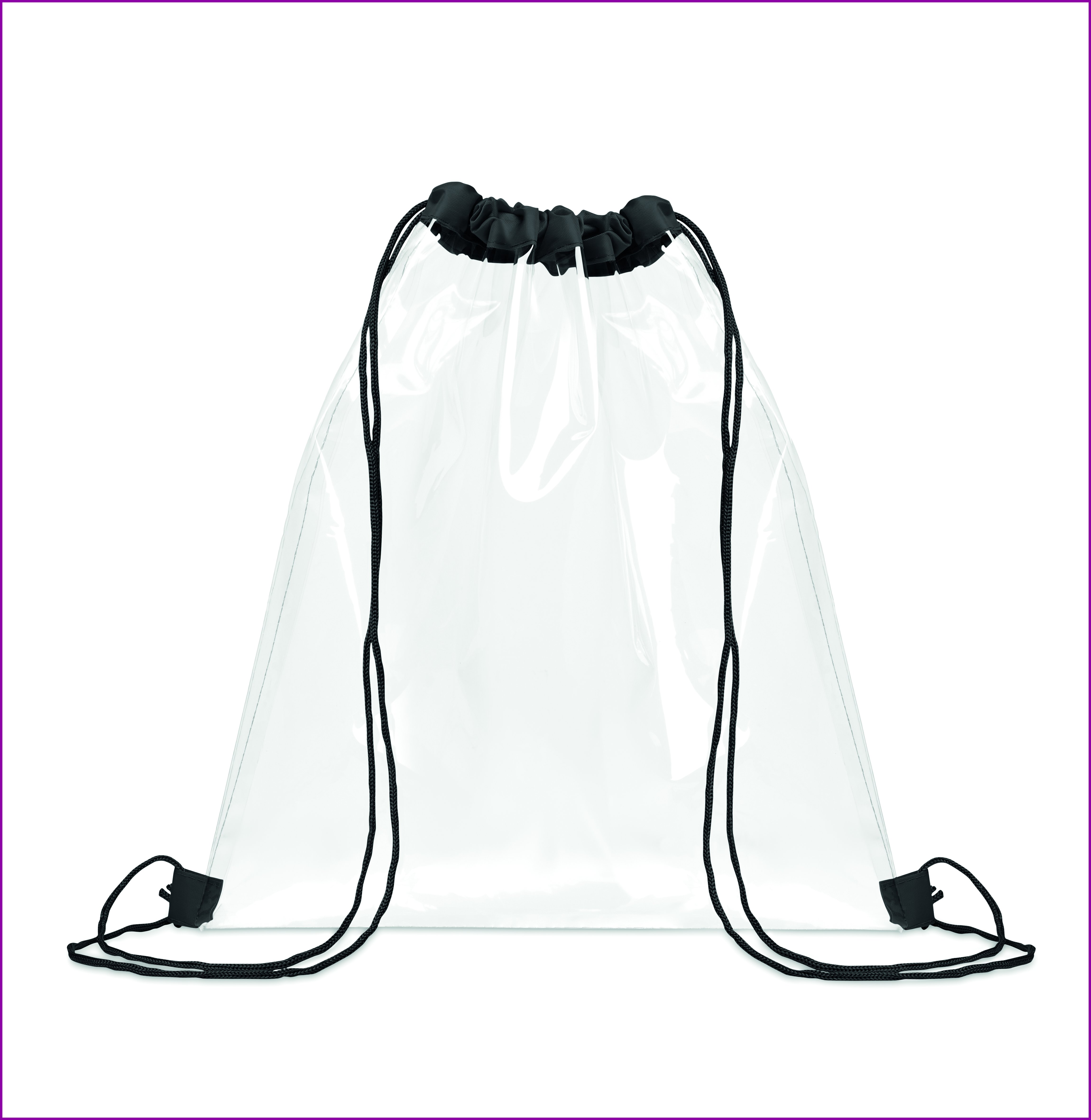 Läpinäkyvä narureppu EVA:sta ja PVC:stä. Polyesterinarut.