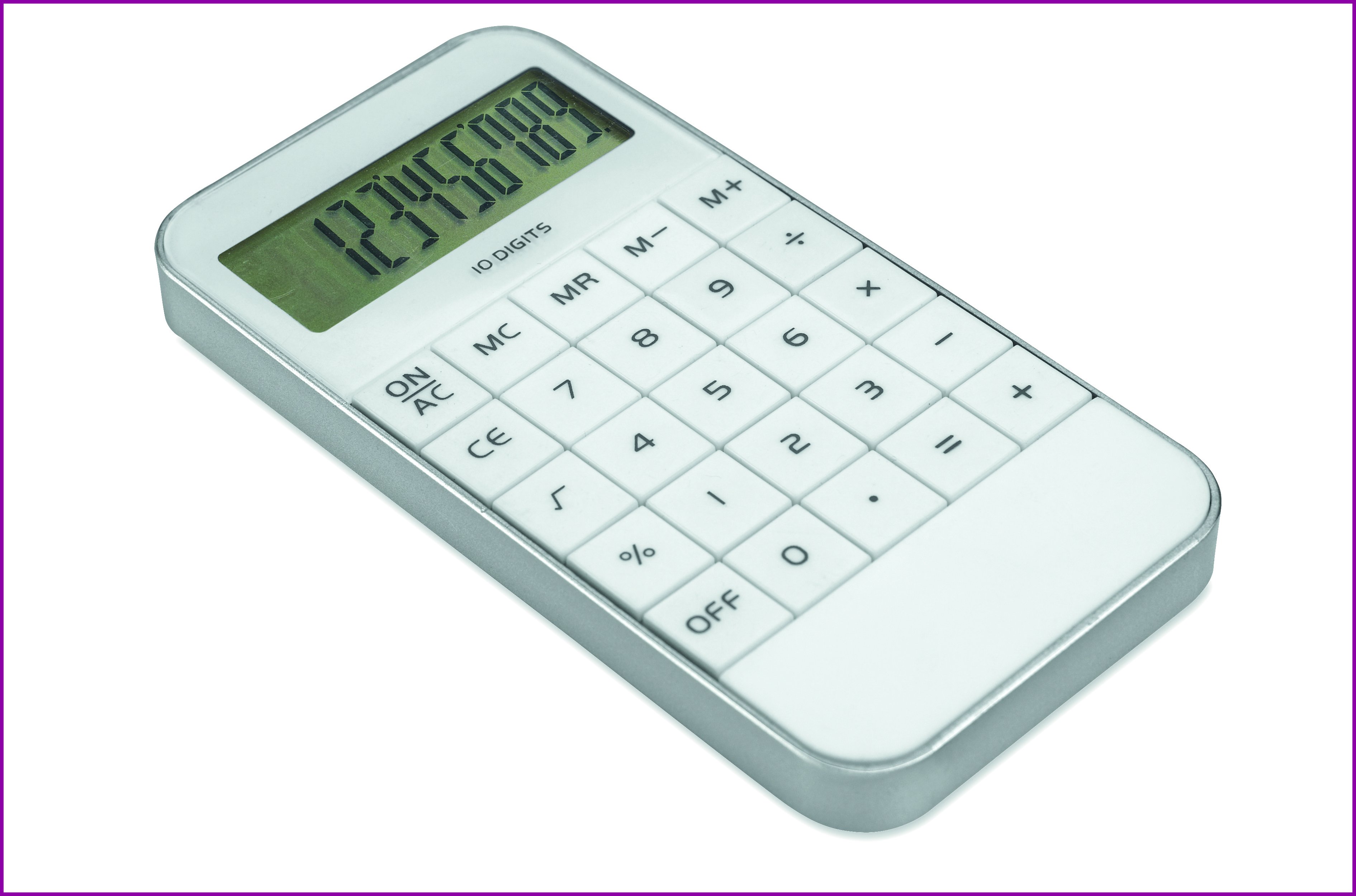 10-numeroinen laskin ABS- muovi kuorella, sisältää yhden AG13 pariston.