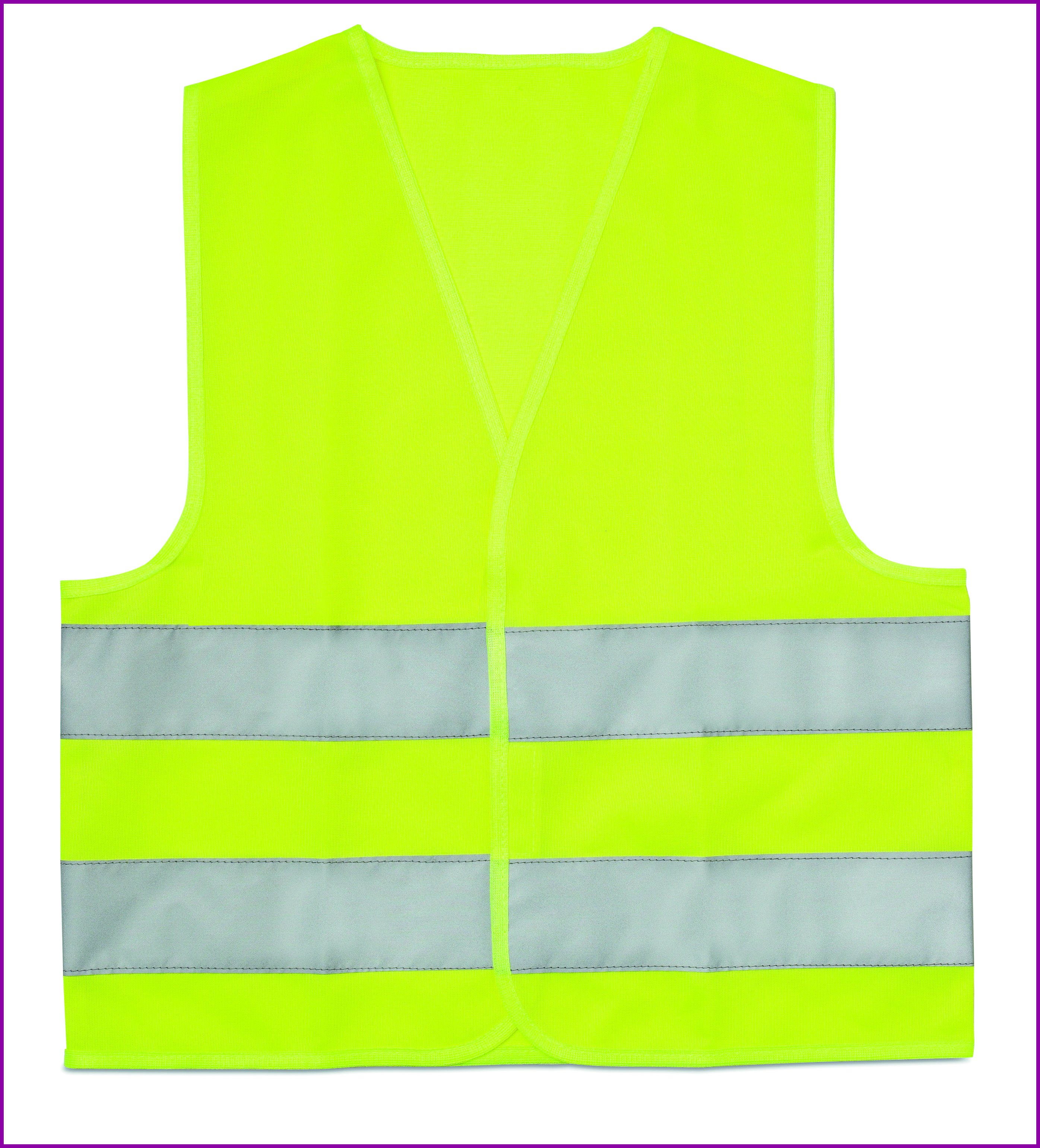 Lasten huomioliivi, kahdella vaakasuoralla heijastavalla nauhalla.Tuote on 100% polyesteriä.