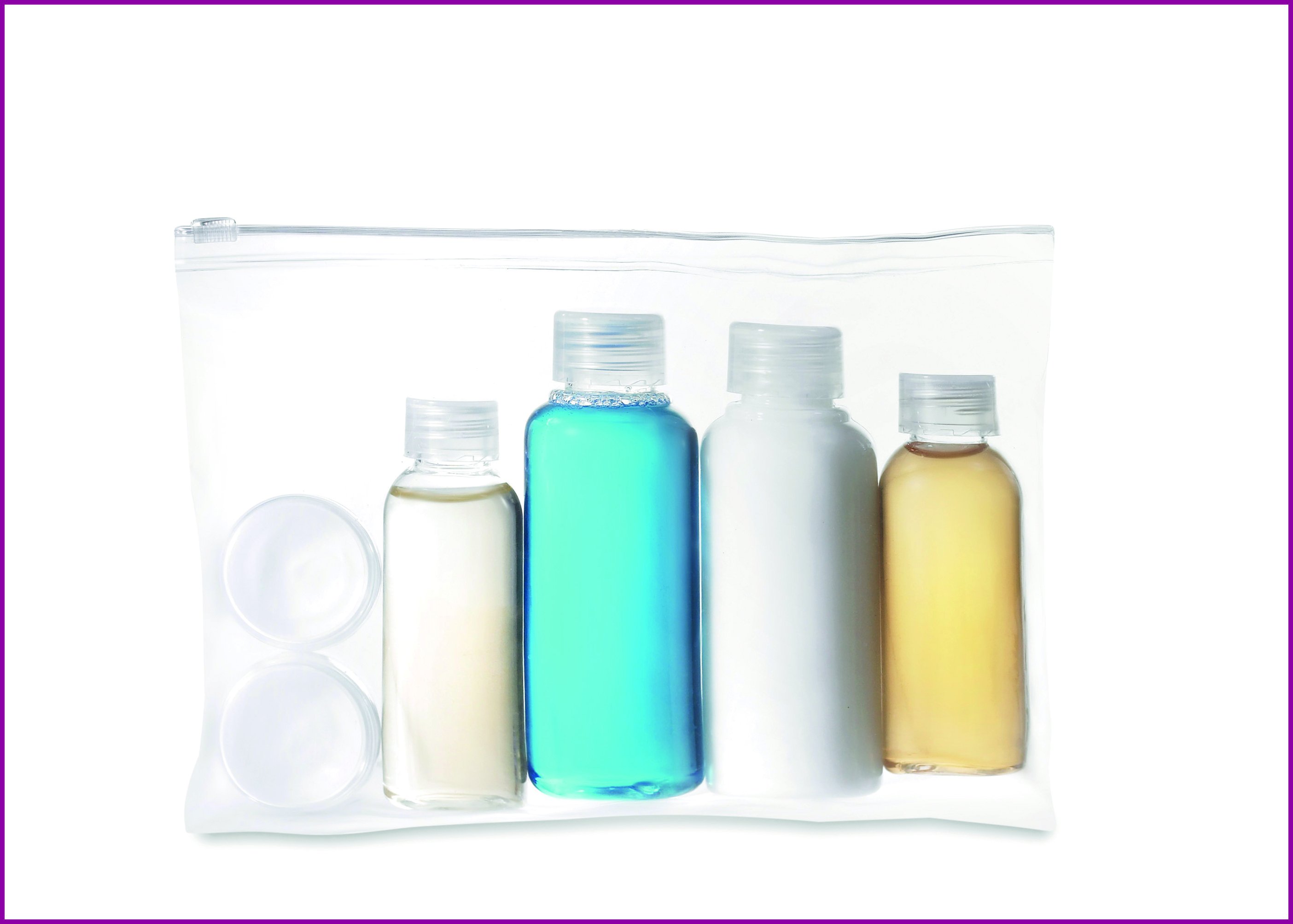 Lentomatkustuspussi, 6 tyhjää pulloa. ( 100 ml, 50 ml, ja 10 ml)