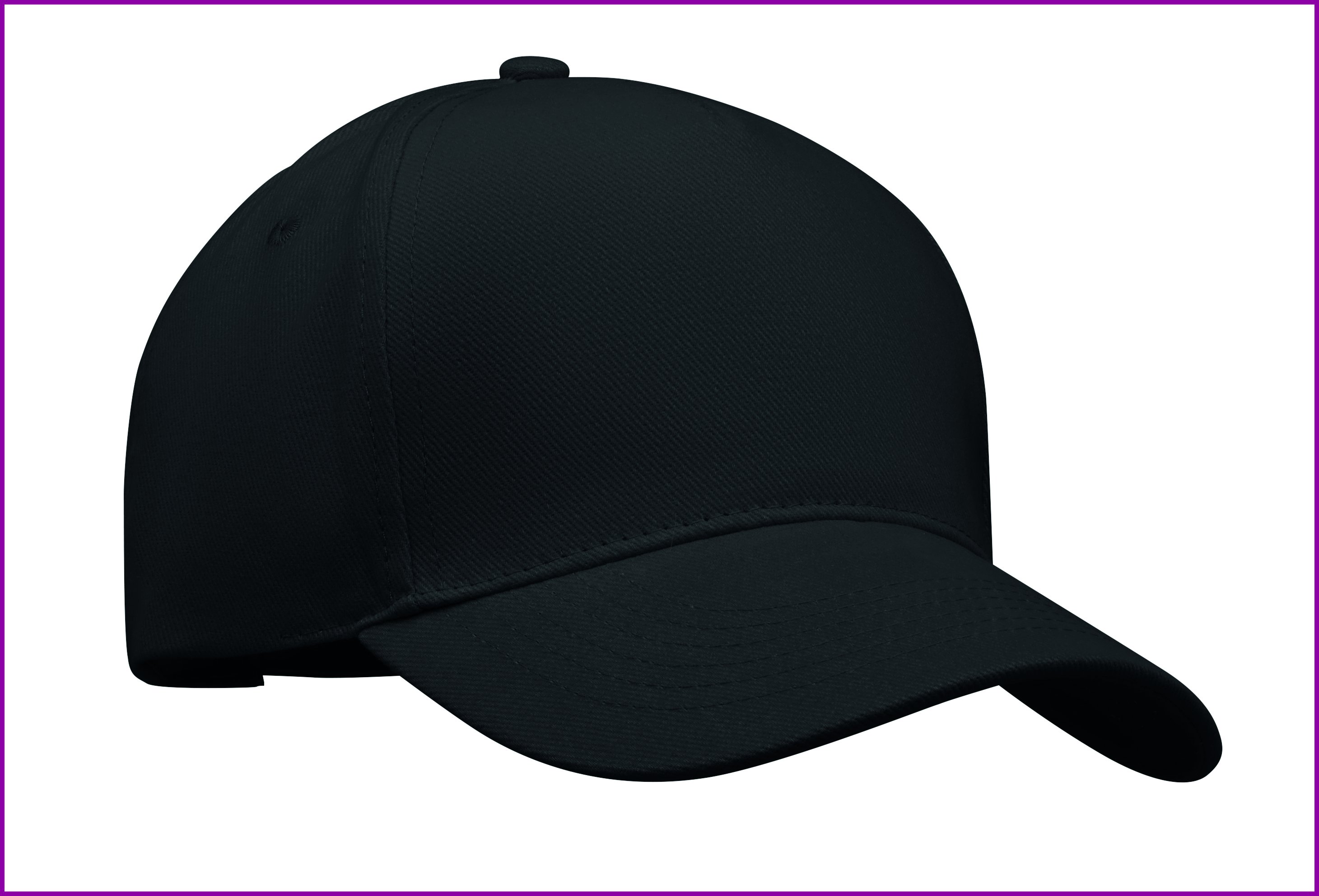 Lippalakki harjattua puuvilla twilliä, 260 g/m². Lakissa viisi paneelia ja takana terässolki. Koko 7 1/4.