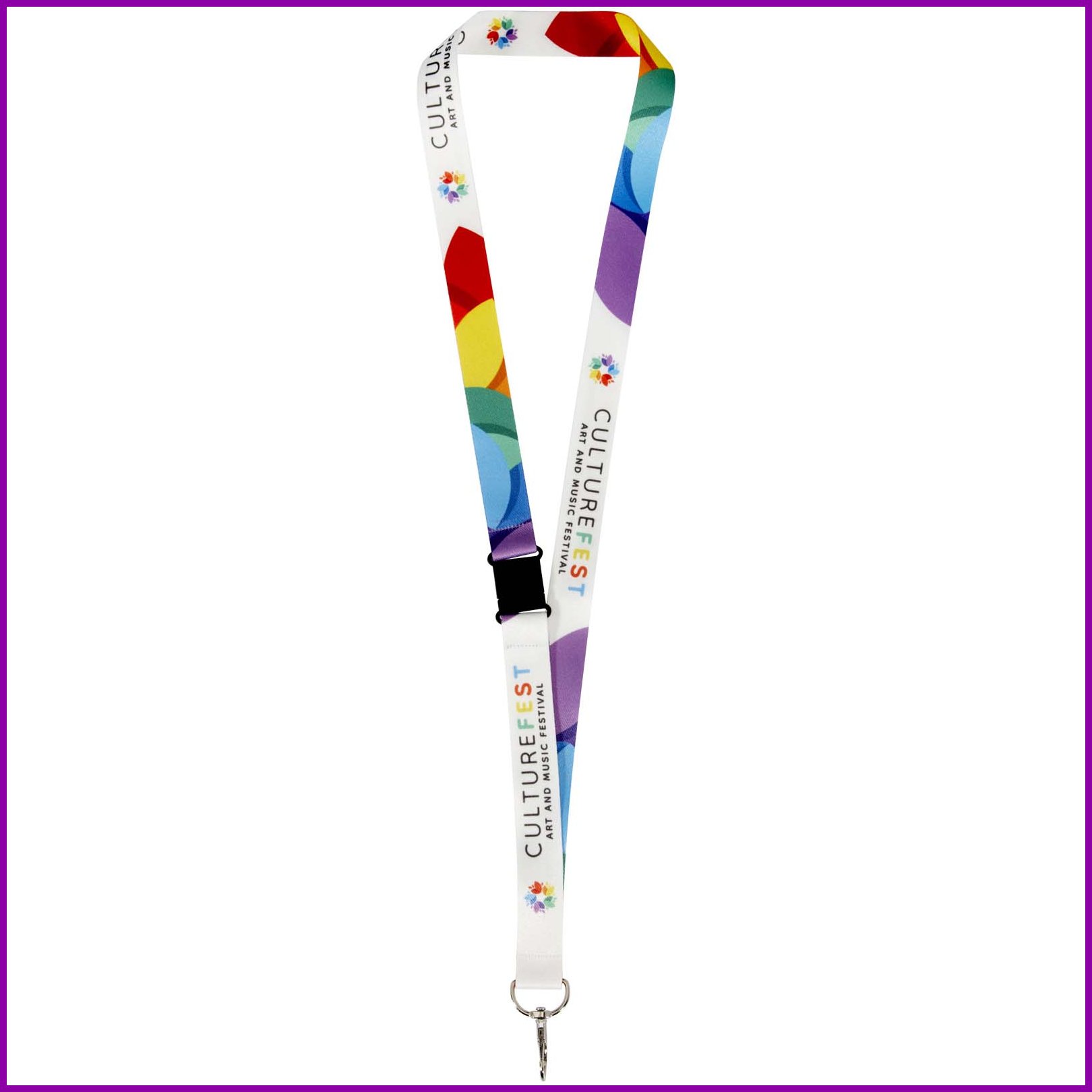 Värillinen RPET-sublimaatiokaulanauha, avaimenperällä ja turvalukkosoljella,jonka avausmekanismi estää kuristumisvaaran. Nauhaan voi kiinnittää nimikyltin, henkilökortin tai avaimet. Saatavana neljällä eri leveydellä: 10, 15, 20 ja 25 mm.