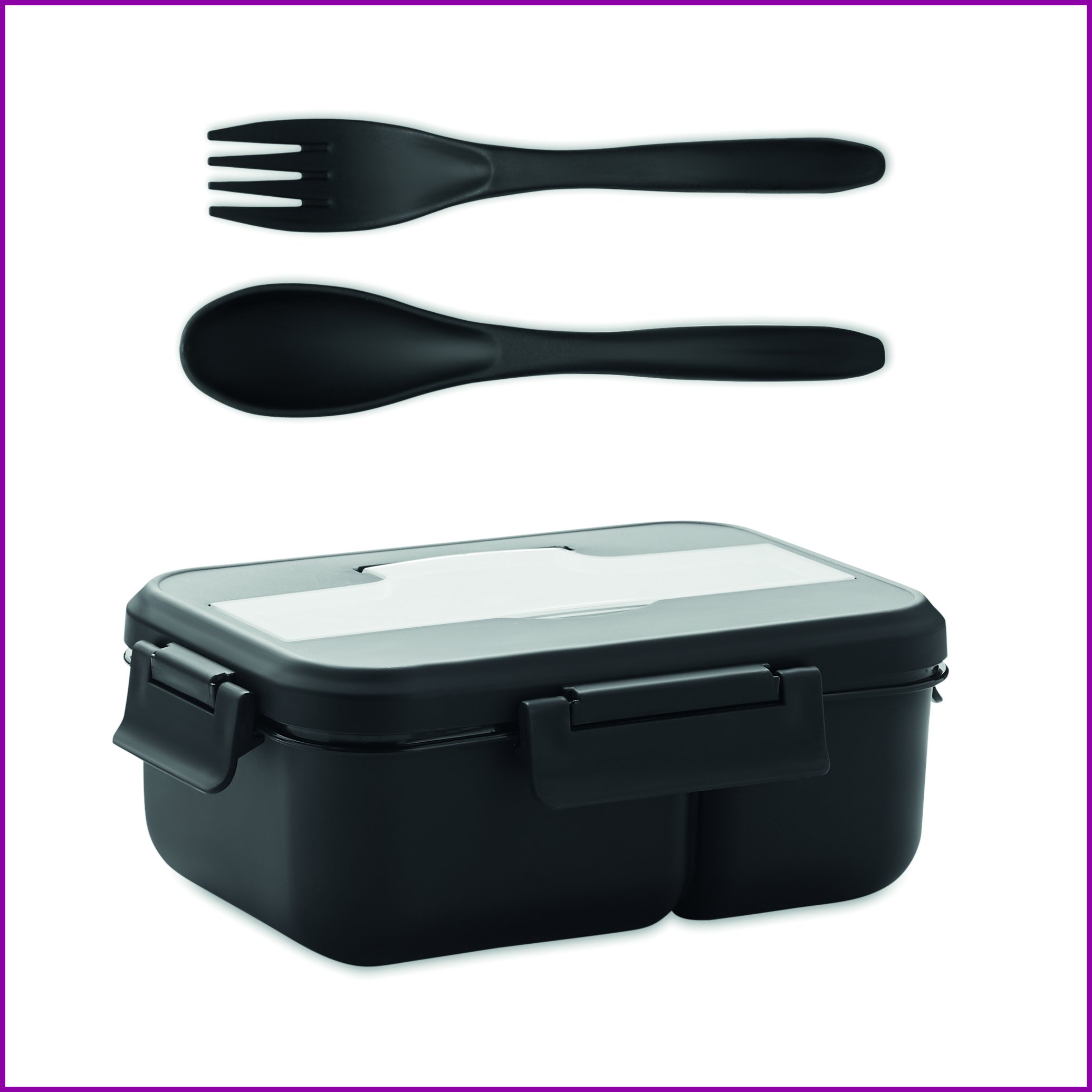 Kaksikerroksinen 1000 ml PP-lounasrasia, yhteensopivalla ruokailuvälinesetillä.