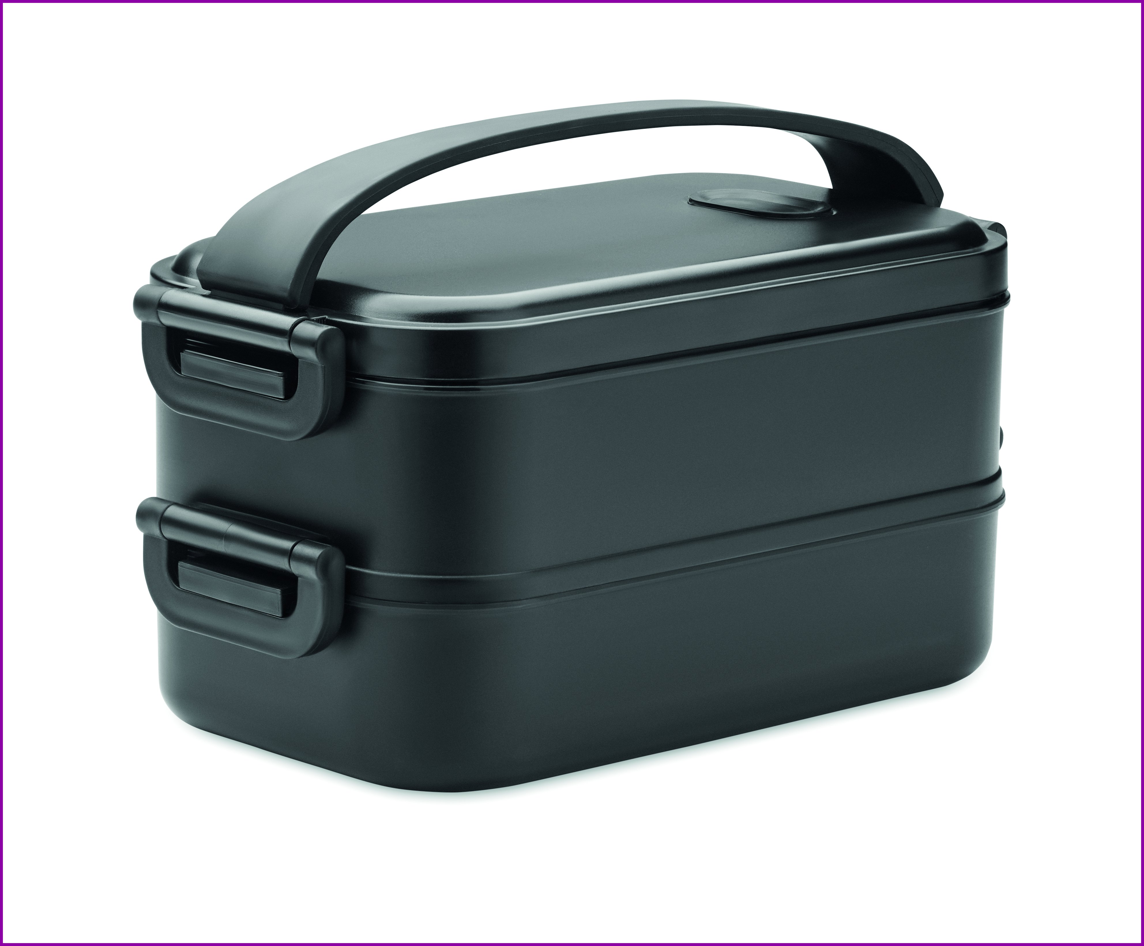 Kaksiosainen lounasrasia, valmistettu PP:stä. Laatikossa on jakolaatikko, sivusoljet ja ilmatiivis kansi. Tilavuus: 800 ml (2x).