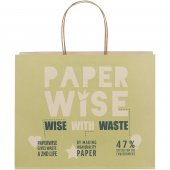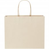 Suuri 150 g/m2-paperikassi (31 x 12 x 25 cm) paperisilla kierrekahvoilla, valmistettu maatalousjätteestä. Etu- ja takaosassa on runsaasti tilaa logon tai minkä tahansa muun kuvion painattamiseen, joten kassi sopii erinomaisesti markkinointiviestin välittämiseen. Euroopassa valmistettu ja 100-prosenttisesti kierrätettävä kassi on vastuullisempi valinta ympäristötietoisille yrityksille, jotka etsivät luontoa säästävää pakkausratkaisua.Värit ja Koot