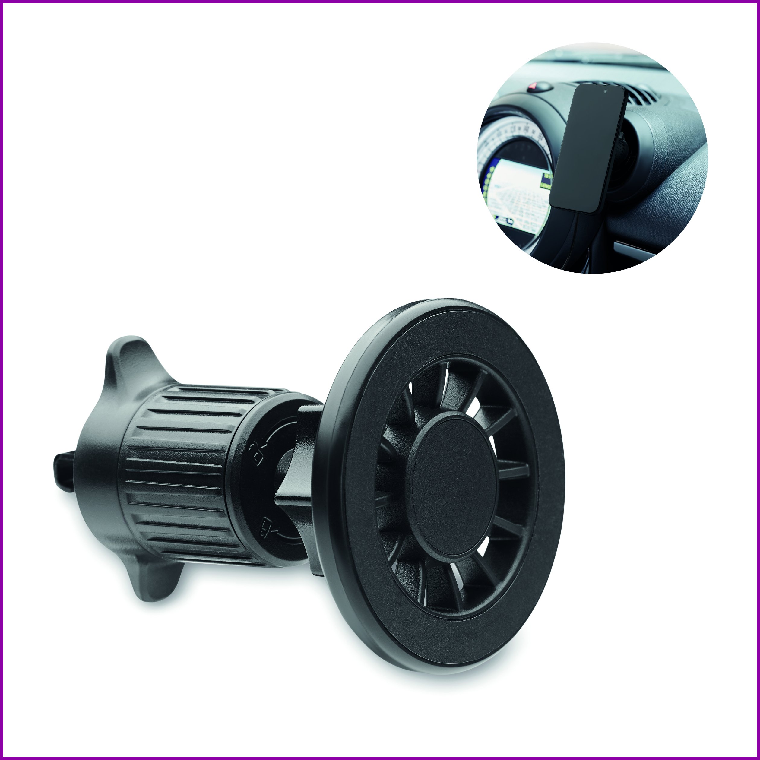 360 astetta pyörivä magneettinen tuuletusaukkoon kiinnitettävä puhelinteline ABS-materiaalia. Sisältää ylimääräisen magneettisen metallirenkaan, joka tukee ei-magneettisten langattomien ladattavien puhelimien lataamista.