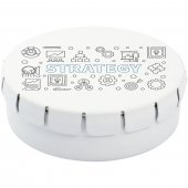 Natural minttupastillit peltirasiassa, joka aukeaa helposti painalluksella. Saatavilla on monenlaisia värejä ja erilaisia sisältövaihtoehtoja: natural minttupastillit, vahvat minttupastillit, sokerittomat minttupastillit, hedelmäpastillit, sydämenmuotoiset mansikkapastillit, kanelipastillit, sitruunaminttupastillit tai suklaat. Kansi voidaan koristella värillisellä digitaalisella painatuksella.