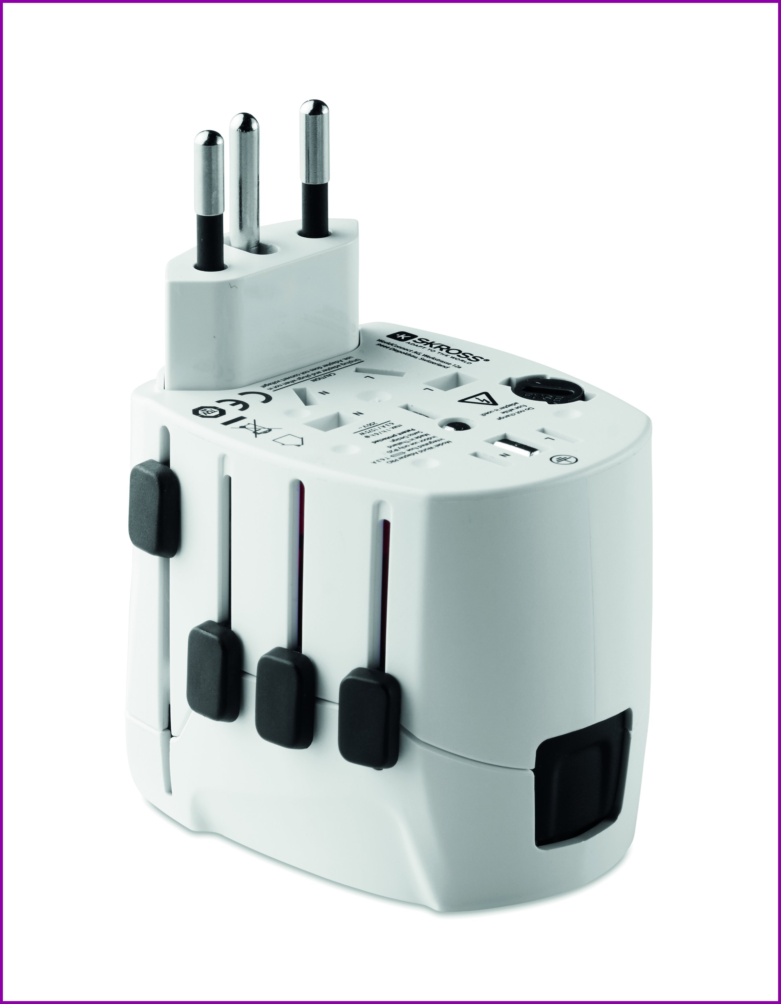 Kompakti 3-napainen matkapistoke Euroopasta matkustaville (Schuko- standardi)12W USB Type-A port. Sopii jopa tehokkaiden laitteiden, kuten kannettavien tietokoneiden ja hiustenkuivaajien, liittämisen kaikkialla maailmassa. 3-napainen, maadoitettu. Täyttää kaikki kansainväliset turvallisuuteen liittyvät standardit ja normit, turvallinen lasten käytettäväksi. SKROSS®.