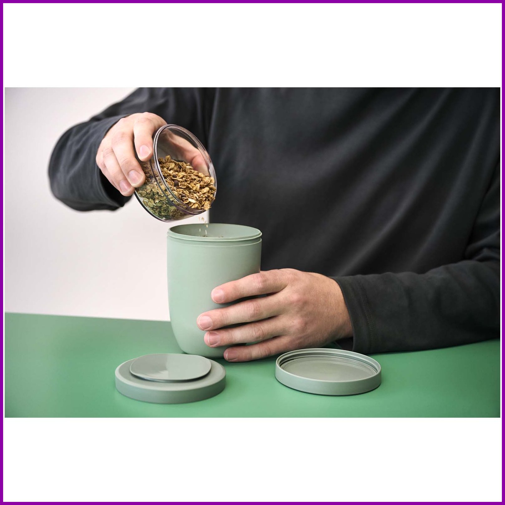 Eristetty lounasrasia, jossa on kaksi erillistä lokeroa ainesten siististi erillään pitämiseen. Jokaisessa rasiassa on kansi sekoittumisen estämiseksi, joten se sopii erinomaisesti aterioille, joissa on täytteitä, lisukkeita tai kastikkeita. Pitää ruoan kuumana 6–8 tuntia tai kylmänä jopa 12 tuntia. Yläosan läpinäkyvän säiliön tilavuus on 300 ml ja alemman säiliön 750 ml. Kestävistä materiaaleista valmistettu ulkopinta pysyy viileänä ja kuivana koskettaa. Käsinpesua suositellaan. Muovikannen osat ovat konepesun kestäviä. BPA-vapaa.Värit ja Koot
