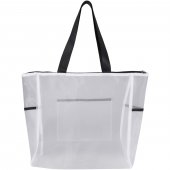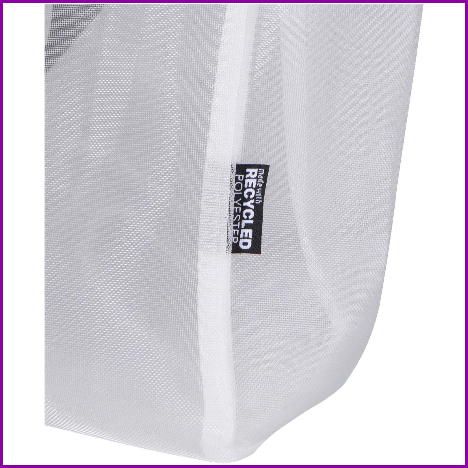 Kierrätetystä polyesteriverkosta valmistettu tilava 23 litran kassi tarjoaa ympäristöystävällisemmän vaihtoehdon käytännöllisyydestä tinkimättä. Siinä on turvallinen vetoketjullinen päälokero, etutasku ja kaksi sivutaskua tärkeiden tavaroiden järjestyksessä pitämiseen. Sileät kantokahvat (alaslaskettu pituus 30 cm) takaavat mukavan käytön. Läpinäkyvä verkkorakenne tuo siistin ja modernin ilmeen ja mahdollistaa sisällön helpon näkyvyyden. Kassi sopii siis ihanteellisesti töihin, matkoille, kuntosalille tai tapahtumiin, joissa edellytetään läpinäkyvien laukkujen käyttöä. Kestää jopa 15 kg painoa.Värit ja Koot