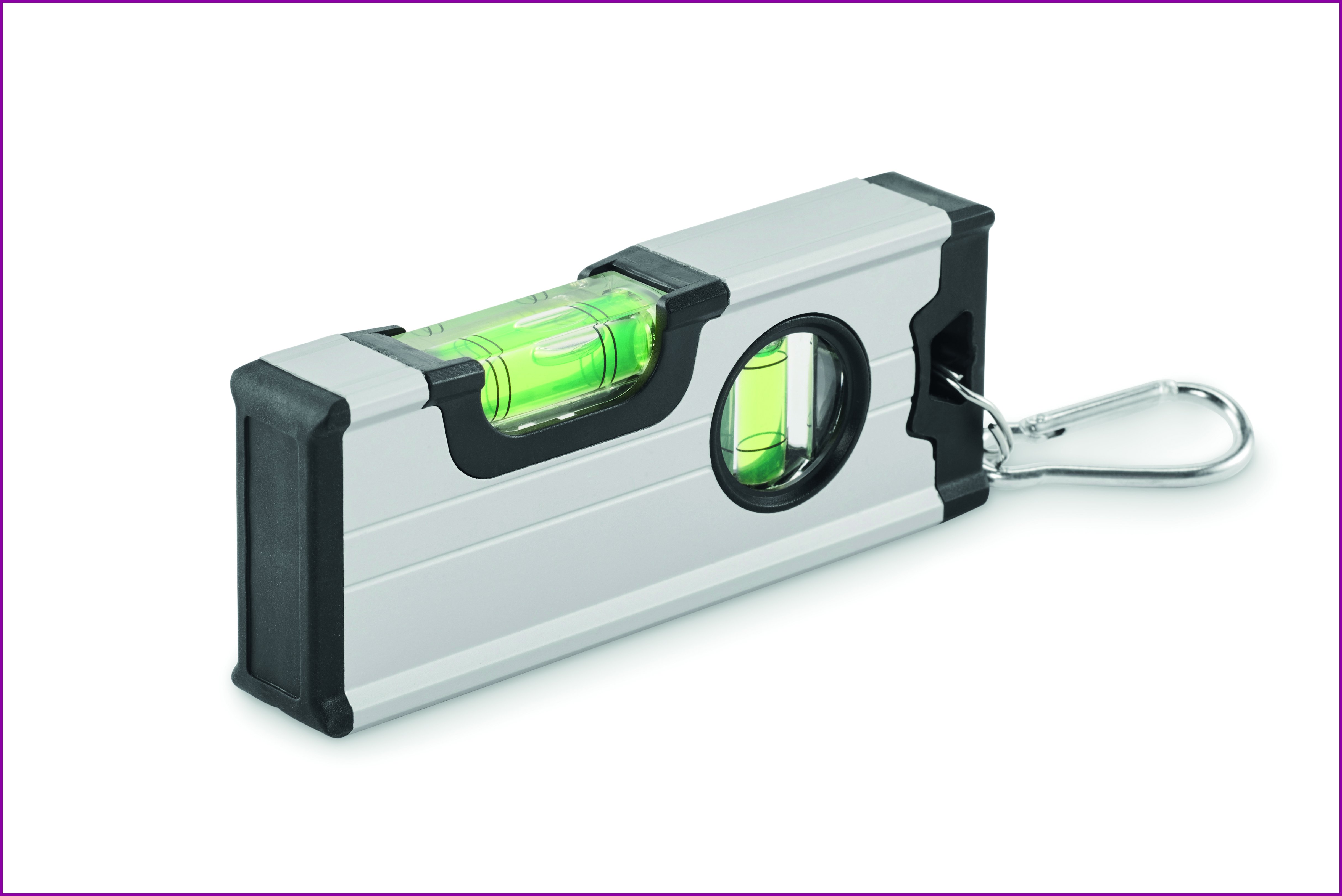 Mini magneettinen vatupassi alumiinikotelossa, jossa on karabiini. Karabiini ei ole tarkoitettu kiipeilyyn (ei-ammattimaiseen käyttöön).