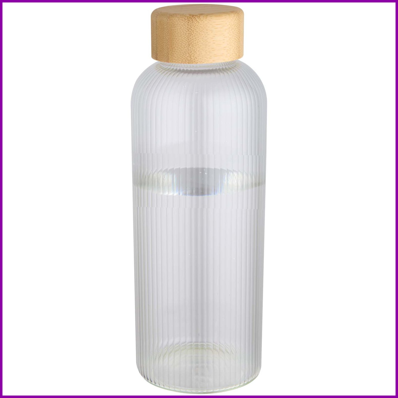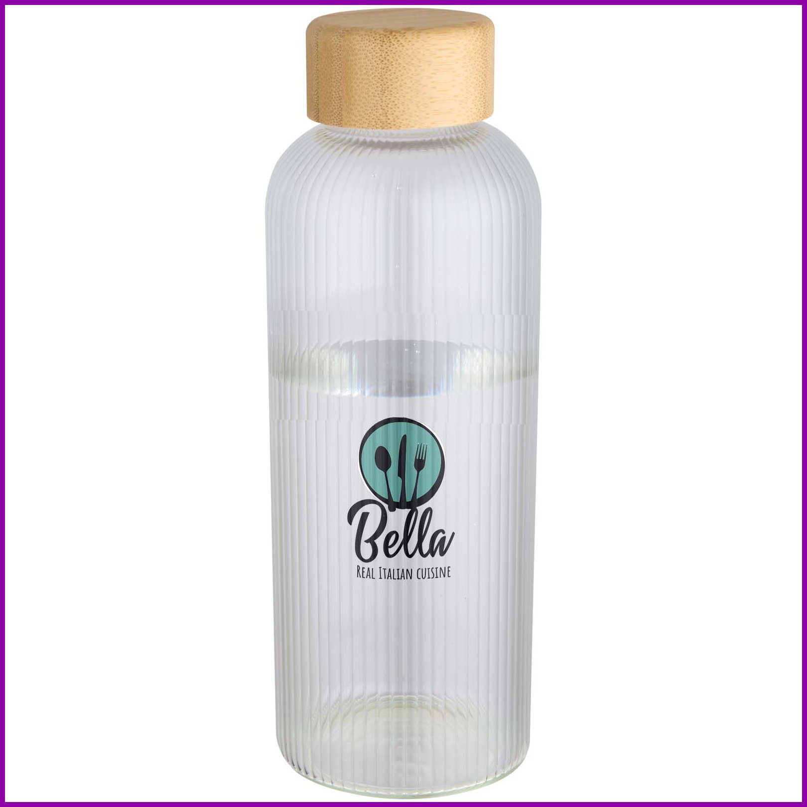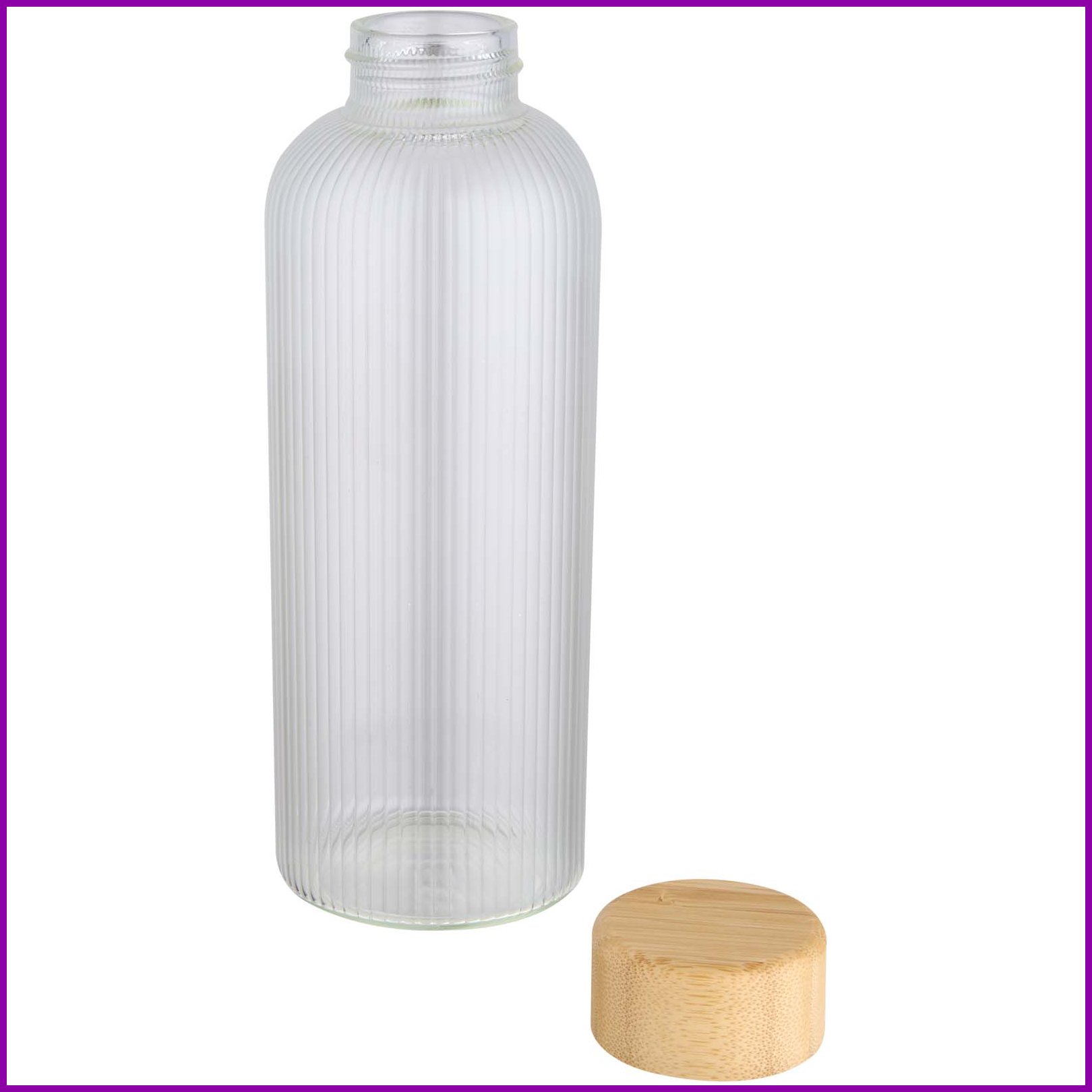 Borosilikaattilasista valmistettu pullo, jossa on bambuinen kansi. Pullossa on ainutlaatuinen, uurrettu sisäpinta ja sileä ulkopinta, joka sopii erinomaisesti logon painattamiseen. Korkkiin käytetty bambu on hankittu kestävästi, ympäristö- ja sosiaalinen vastuu huomioiden. Toimitetaan kierrätetystä kartongista valmistetussa lahjapakkauksessa. Tilavuus: 650 ml.