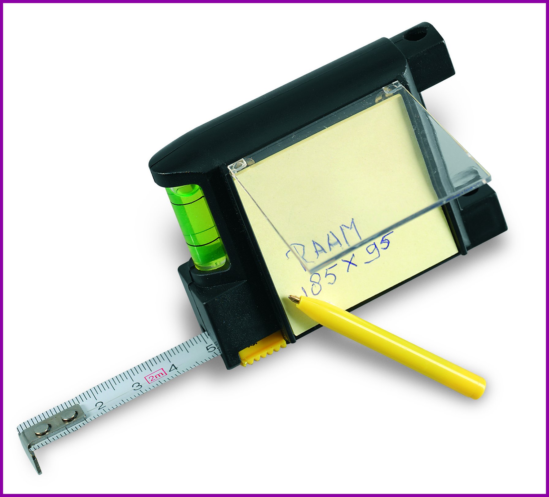 2 m mittanauha, sisältää muistilappulehtiön, kuulakärkikynän ja vatupassin.