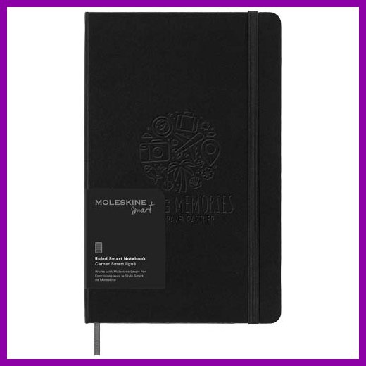 Moleskinen Smart Writing Set -sarjan parhaimmistoa on Smart Notebook, jossa on klassinen Moleskine-muoto ja norsunluunvärinen paperi. Jokaisella sivulla on näkymättömiä N-koodeja, joiden avulla Smart Pen -kynä luo välittömän digitaalisen kopion jokaisesta sanasta ja luonnoksesta Moleskine Notes -sovelluksessa. Siinä on joustava suljenta, norsunluunvärinen, hapoton 100 g/m²:n viivoitettu 100 g/m²:n erikoispaperi, joka on suunniteltu toimimaan Moleskine Smart Pen -kirjoituskynän kanssa, etusivulle painettu ”‘Katoamistapauksessa’” -teksti ja laajennettava sisätasku takana.Värit ja Koot