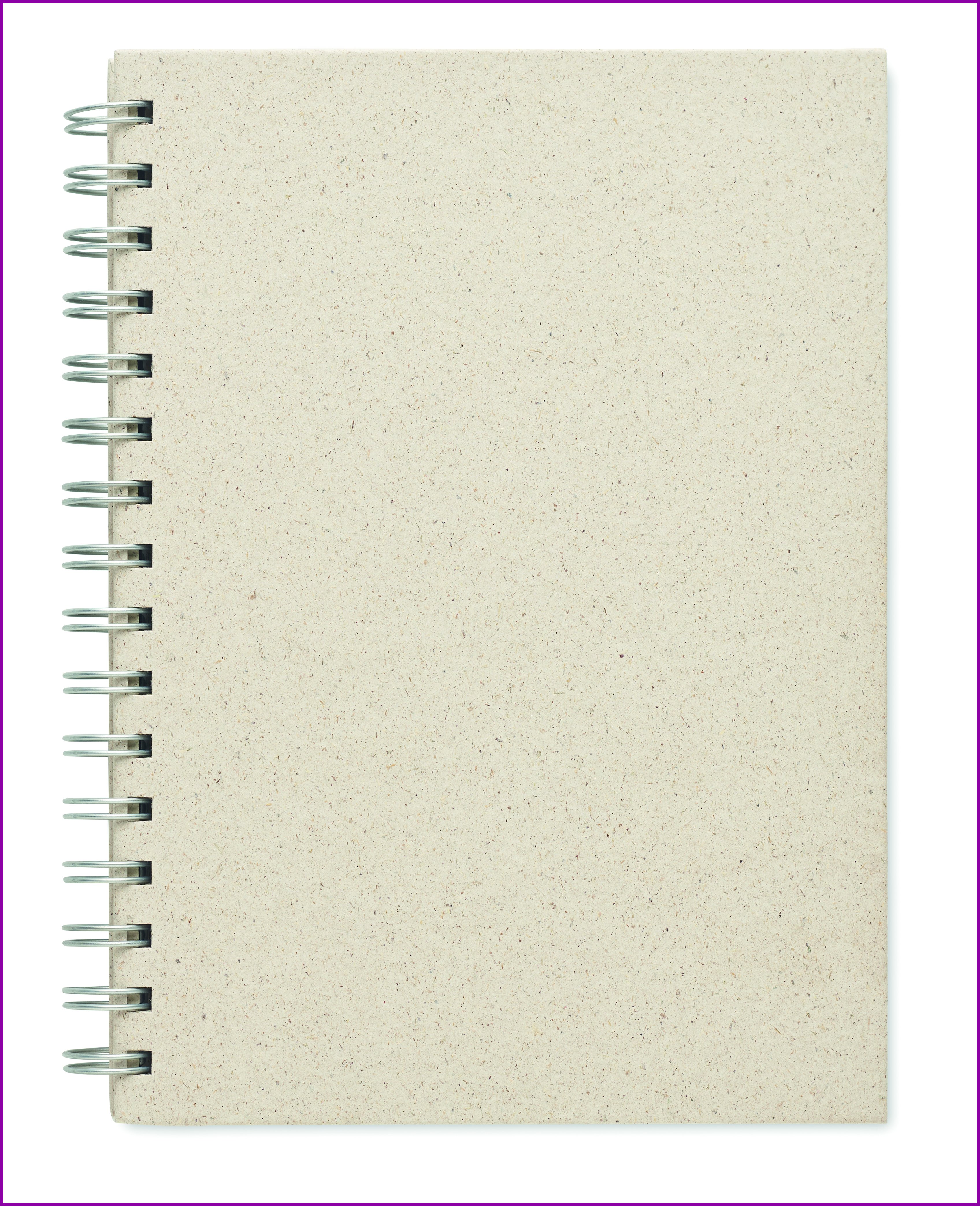 A5 notebook with 80 sheets of lined grass paper and carton cover. Ideal for all your notes during office meetings or at school. Grass paper makes for a perfect conscious promotional give-away. From beginning to end, the production process is sustainable and more environmentally friendly than traditional wood-based paper. Made in EU.