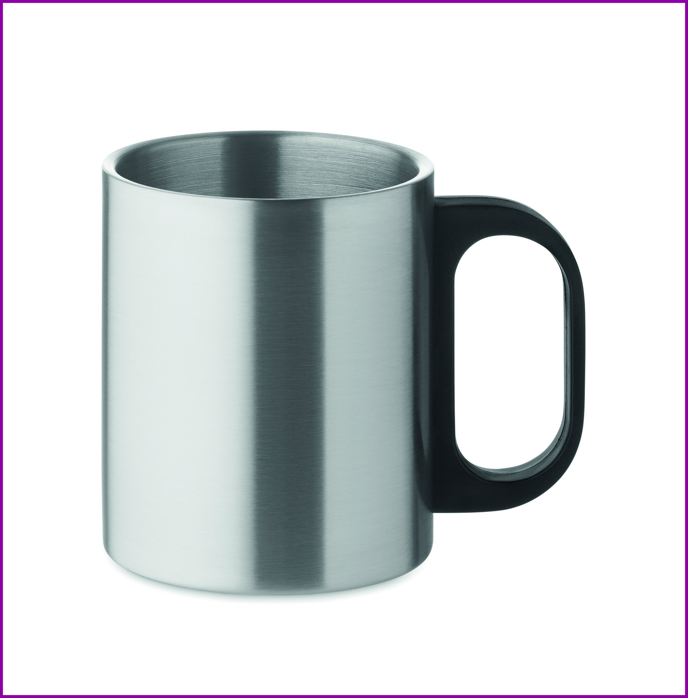Kaksiseinäinen ruostumattomasta teräksestä valmistettu 300 ml muki PP-kahvalla.