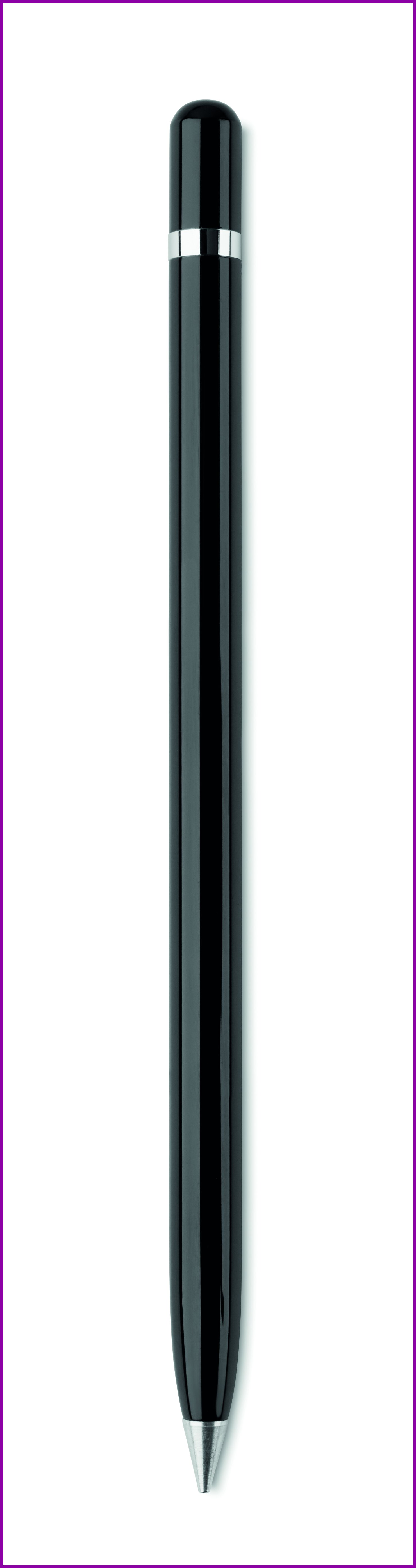 Kestävä alumiinikynä ilman mustetta. Kynä kirjoittaa grafiittikärjellä, mikä takaa pitkän käyttöiän.