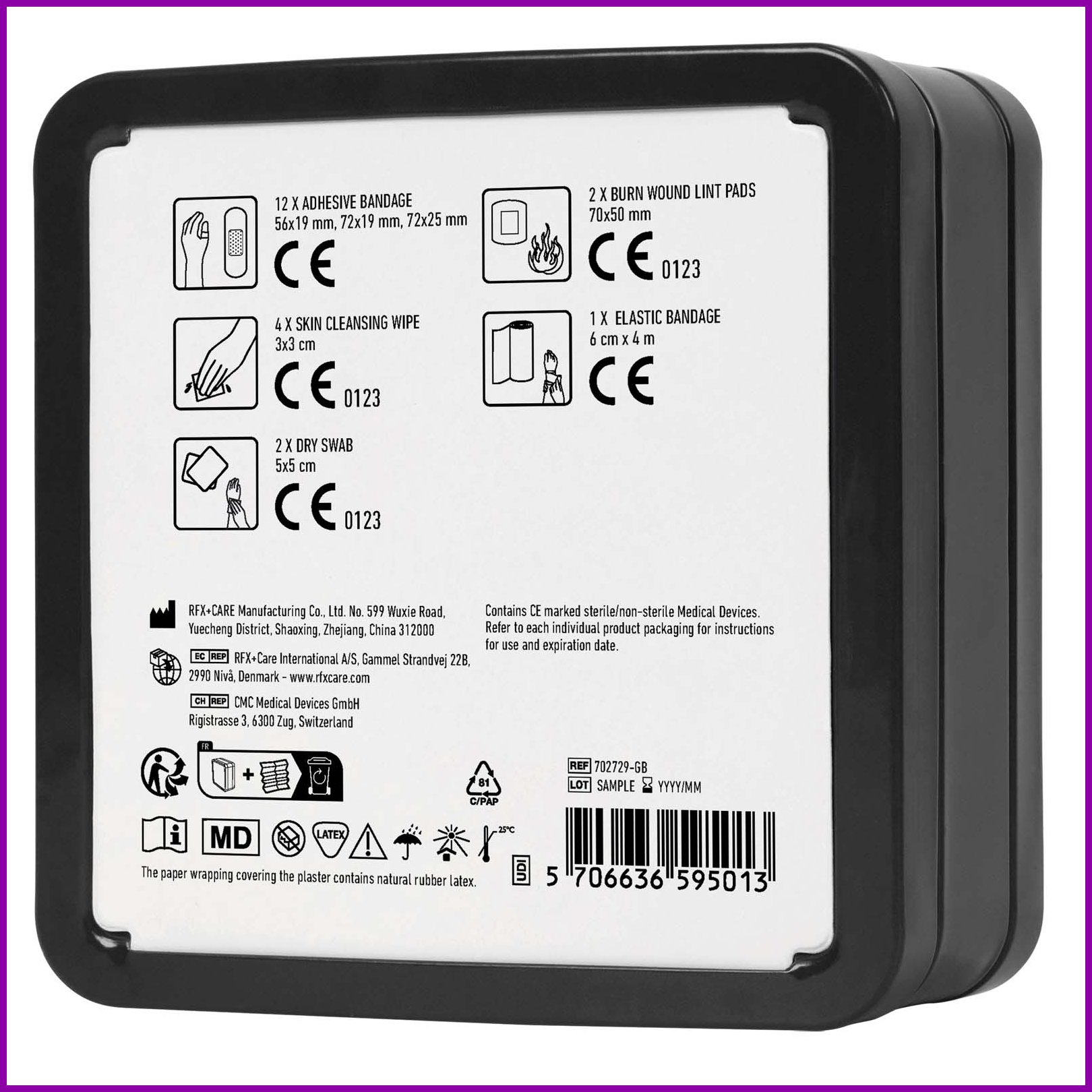 Tämä ensiapulaukku on käytännöllinen ja kätevä pitää mukana kotona, autossa tai matkalla ja auttaa sinua varautumaan pieniin vammoihin ja hätätilanteisiin. Sisätää 12 pesunkestävää laastaria, 4 ihonpuhdistuspuikkoa, 2 kuivaa vanupuikkoa, 1 elastinen side ja 2 palovammatuppoa. Kaikki pakkauksen tuotteet täyttävät sovellettavat EU-määräykset, mikä takaa turvallisen ja luotettavan hoidon silloin, kun sitä eniten tarvitset. Toimitetaan uudelleenkäytettävässä ja kierrätettävässä rasiassa.Värit ja Koot