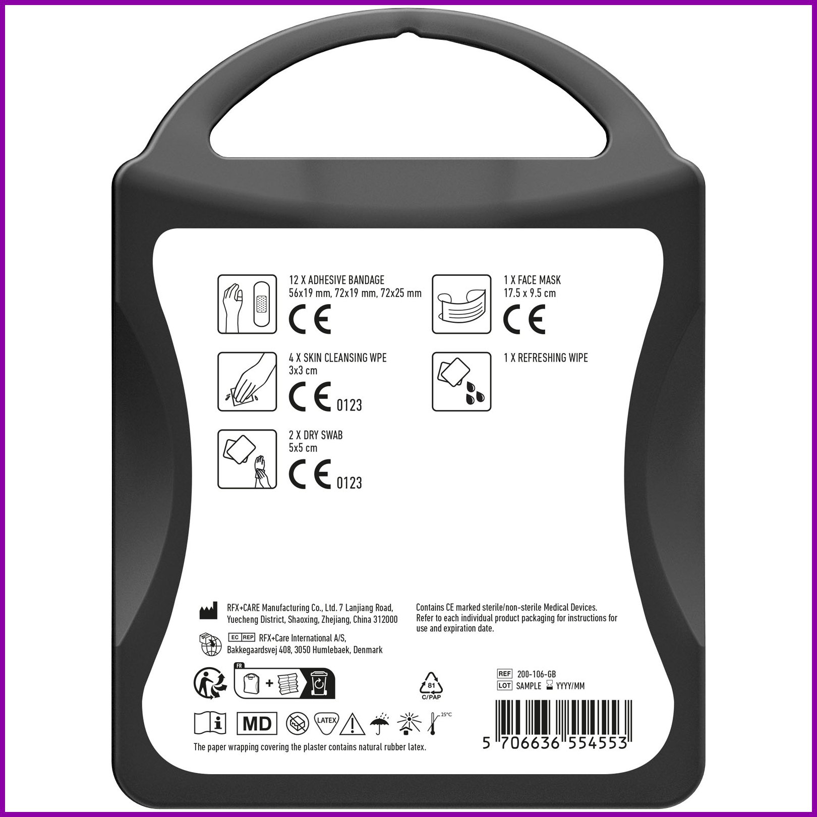 Pyydä tarjous painatuksesta tuotteseen MyKit ensiapupakkaus toimistoon Musta